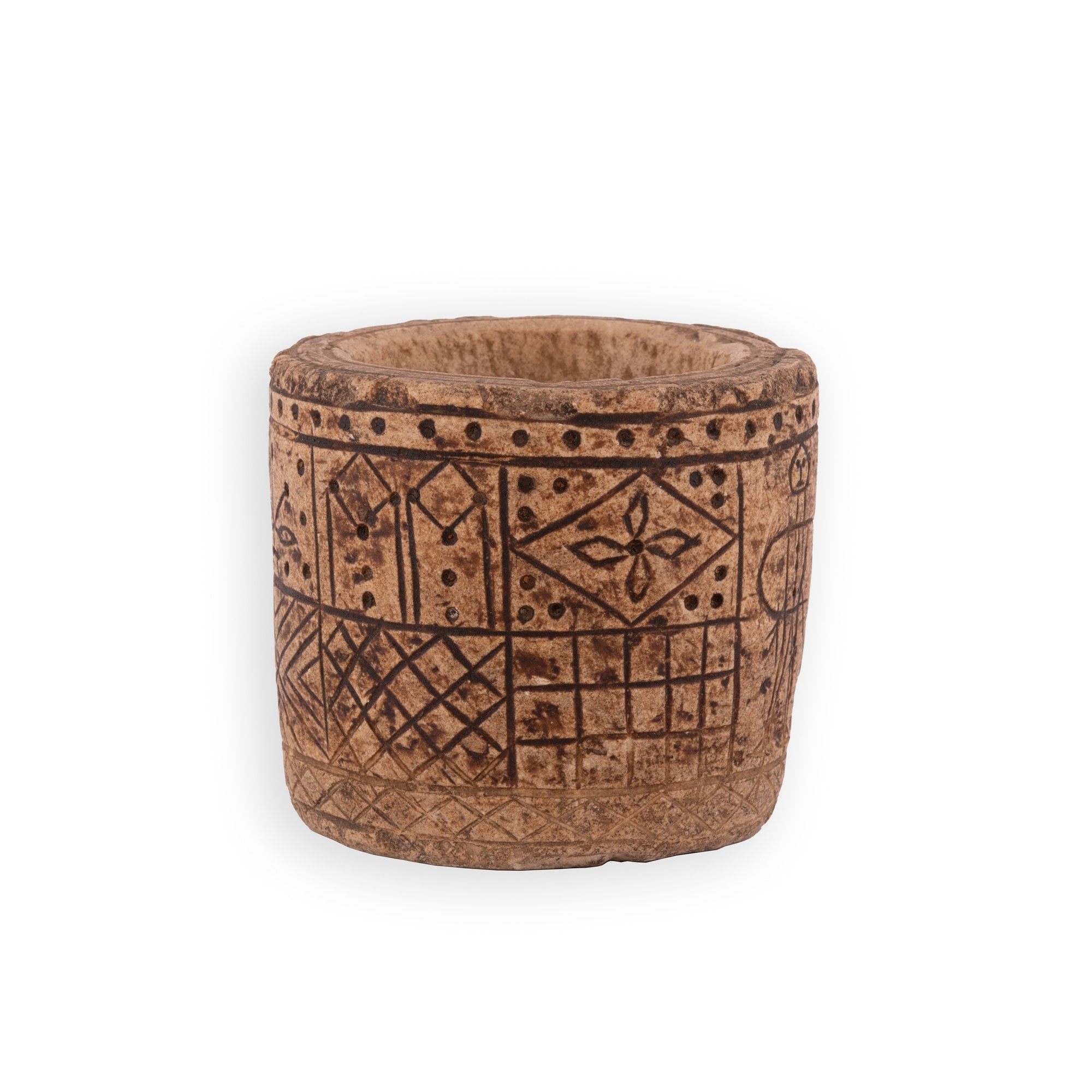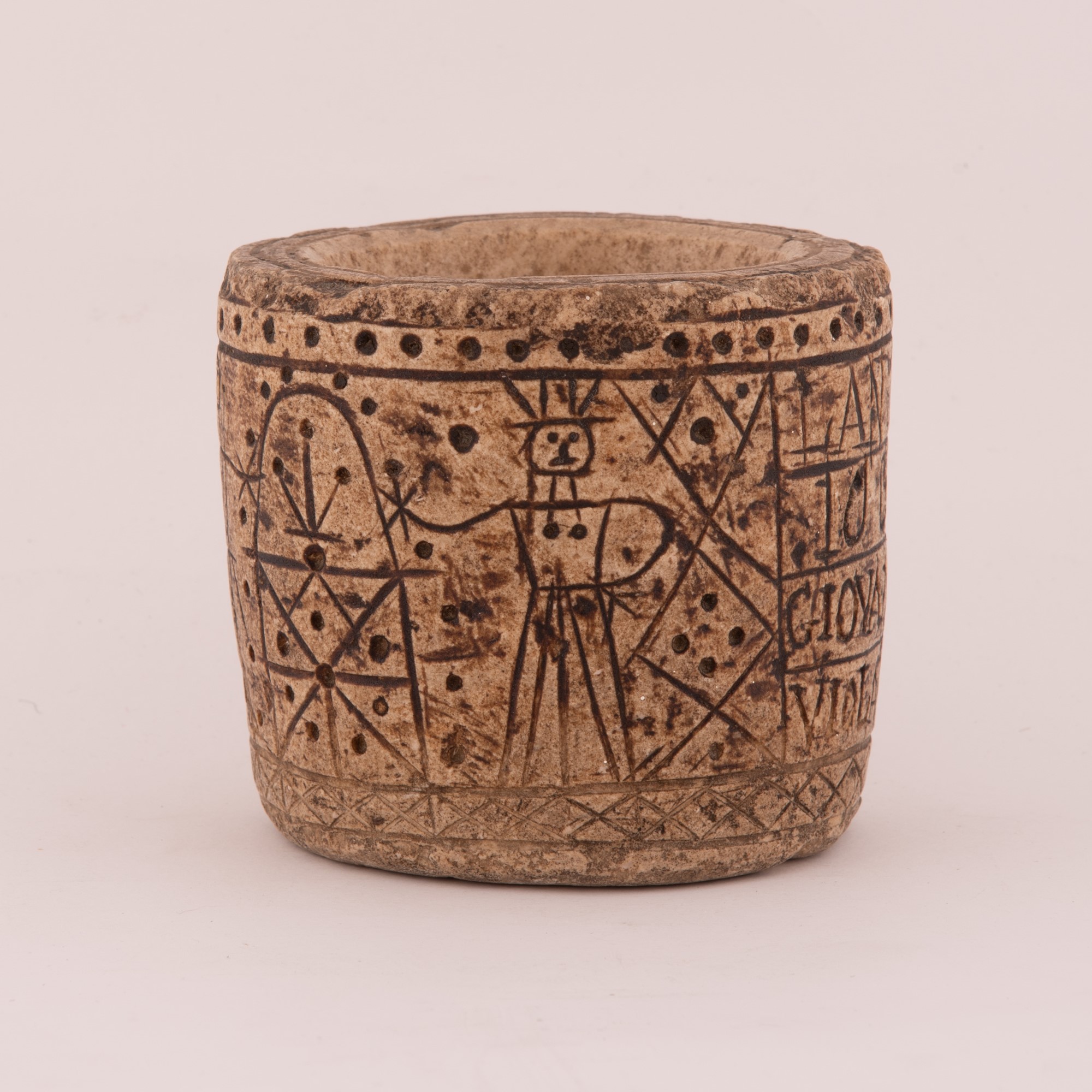 cm 11,8x13 cm 11,8x13 Mortaio in pietra di forma conica riccamente lavorato.