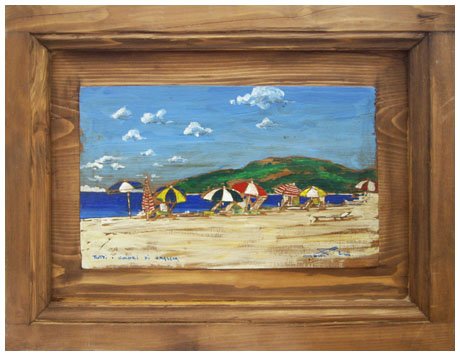 MASSIMO LOMI Livorno 1953 Tutti i colori della spiaggia 2013 Tempera su tavola 41,5 x 56. Firma in b. a d., titolo in b. a s.; sul verso etichetta studio dell’artista. Autentica dell’autore su foto in esecuzione.