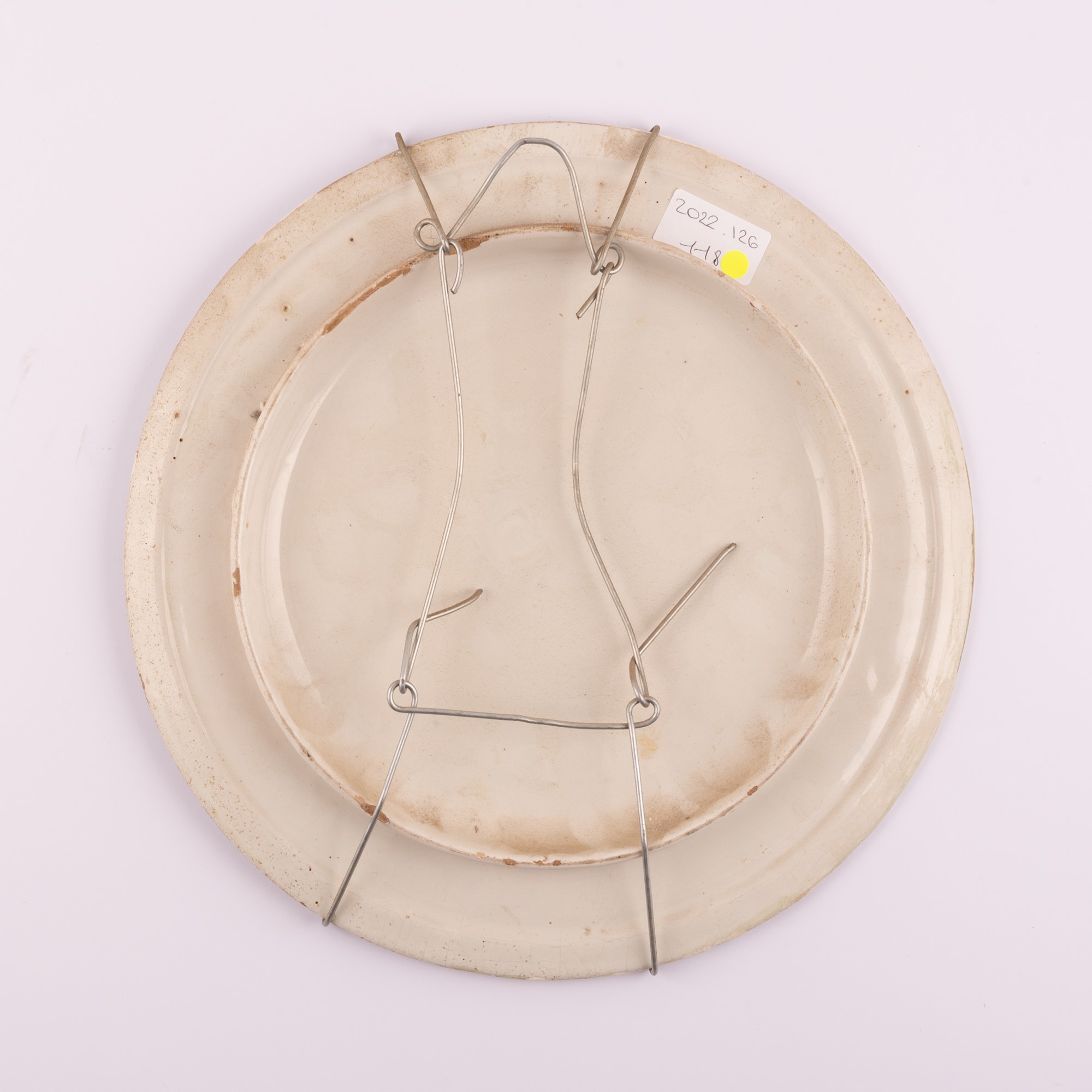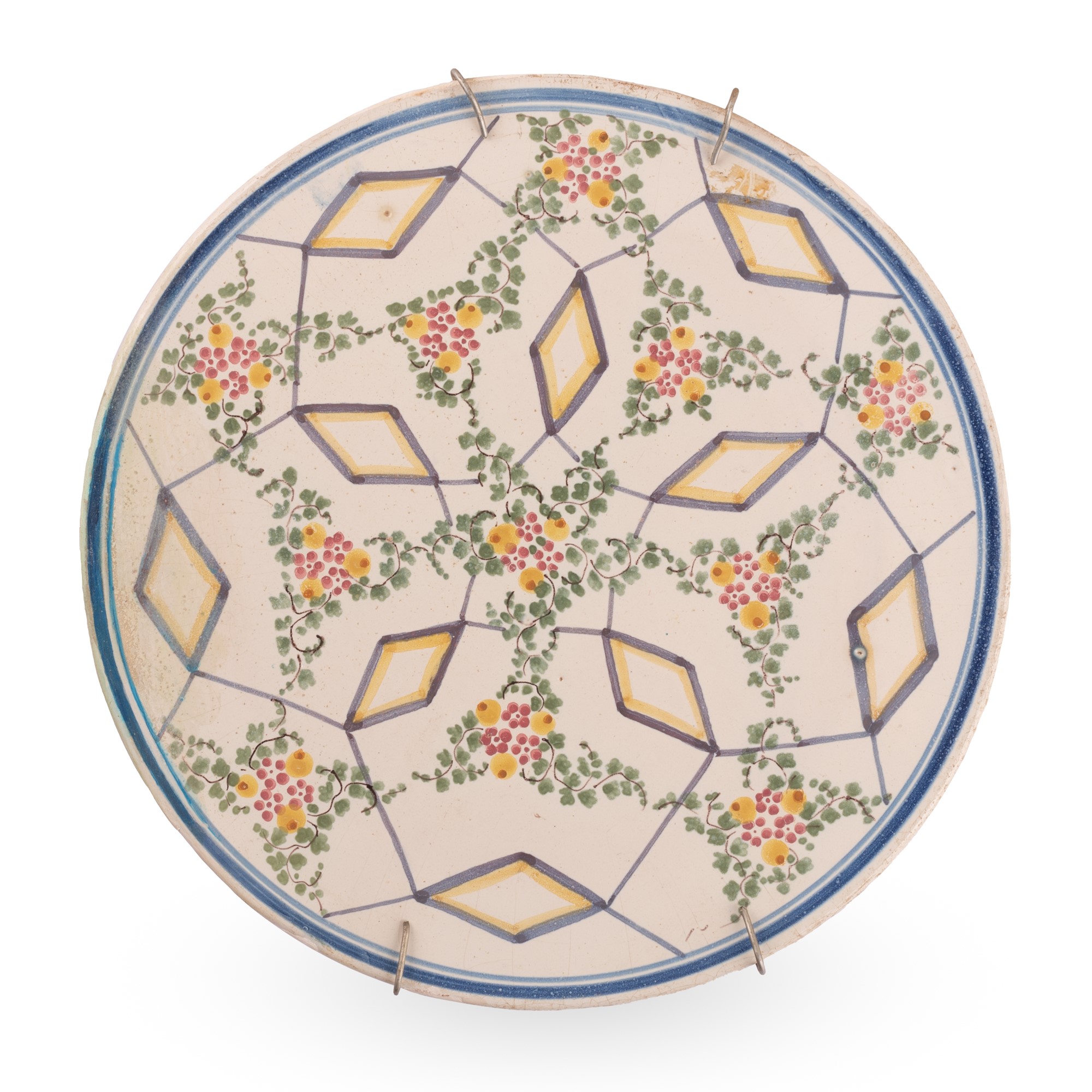 Manifattura abruzzese del XX secolo ( - ) Tagliere in maiolica decorato con elementi geometrici e floreali Ø cm 30