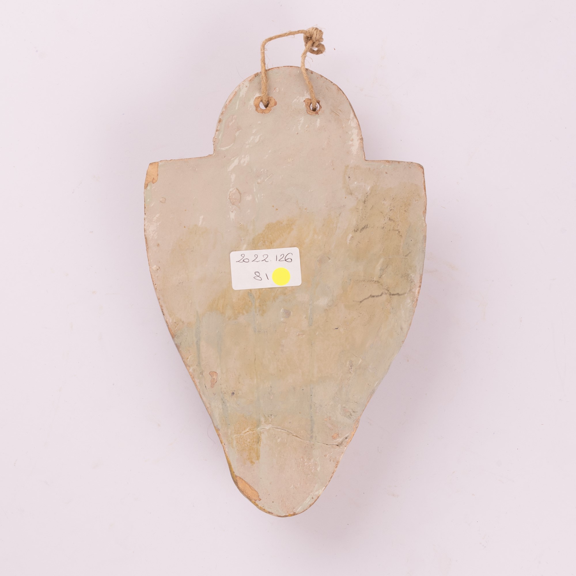 Lot 246 | Manifattura di Ariano Irpino attiva tra la fine del XVIII e la prima metà del XIX secolo ( - ) Acquasantiera in maiolica decorata con elementi a rilievo ed una figura femminile nell'edicola centrale cm 24,5x15,5