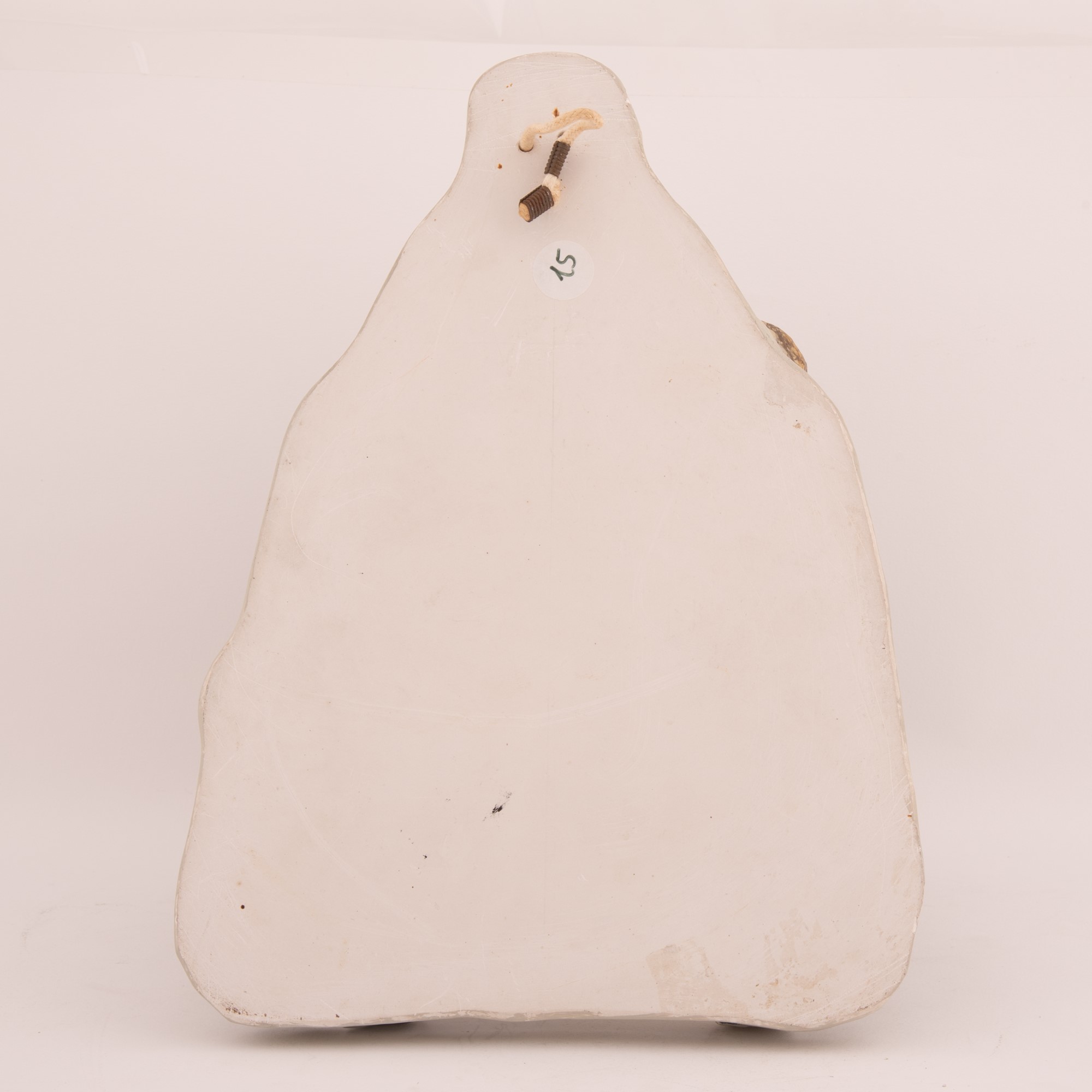 Francesco Angelo Grue (Castelli , 1618 - Castelli, 1673) Frammento di acquasantiera a stampo con raffigurato S. Francesco in preghiera cm 34x25,5x9