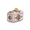 Scatola in maiolica con coperchio decorata a motivi vegetali. Presa a pera. con coperchio cm 10x12; senza coperchio cm 6,5x12