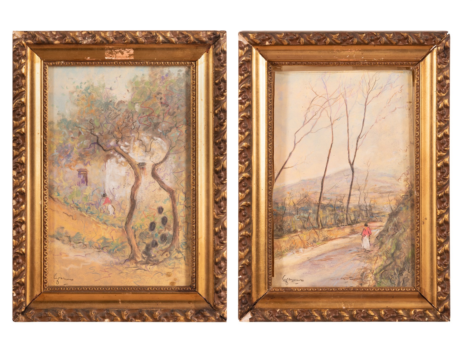 Coppia di pastelli raffiguranti paesaggi