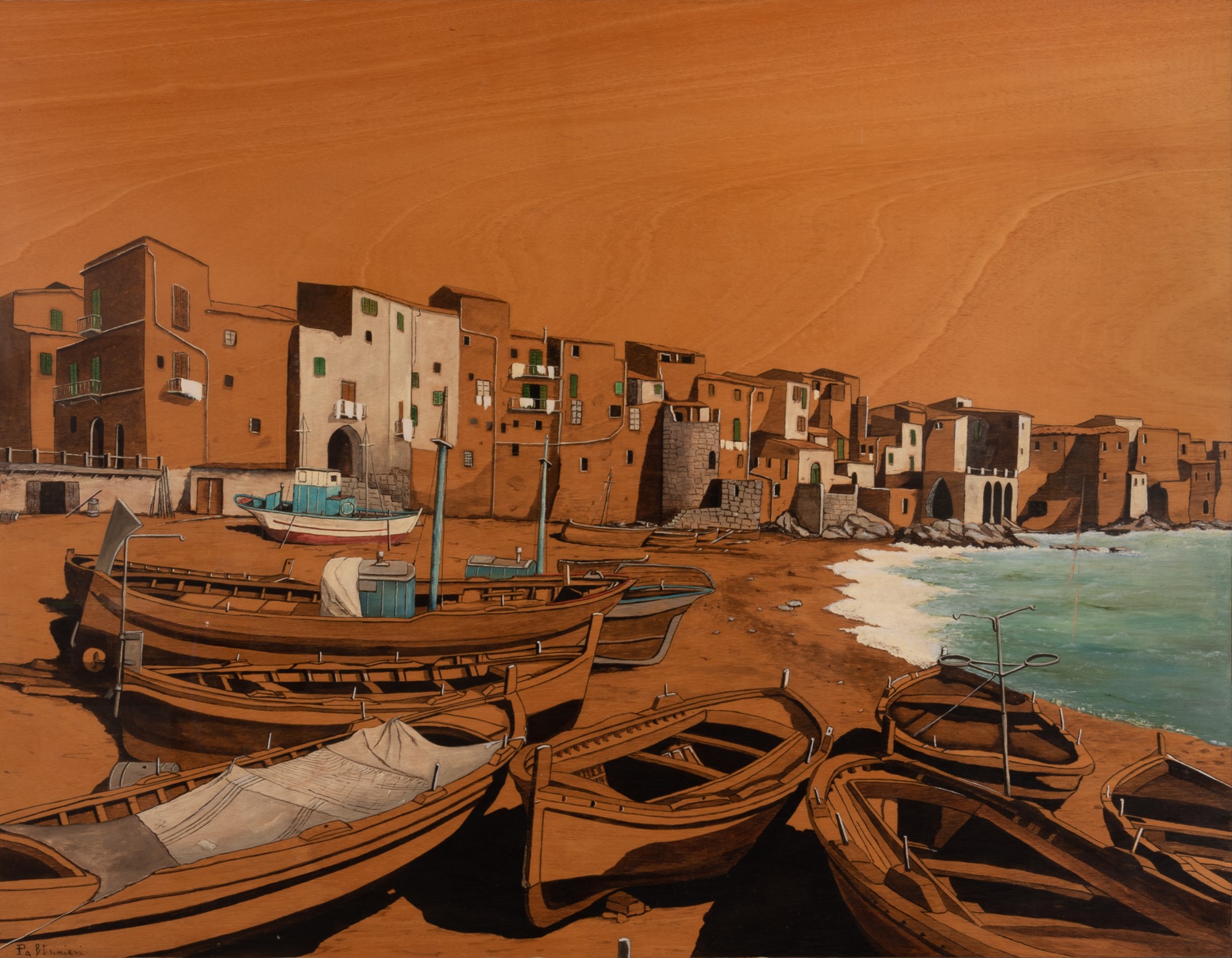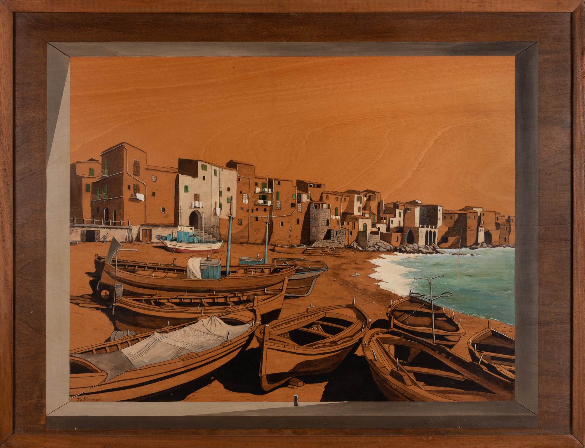 Oreste Paltrinieri (Verona , 1873 - Lucca , 1966) Marina Olio su masonite cm 99x109