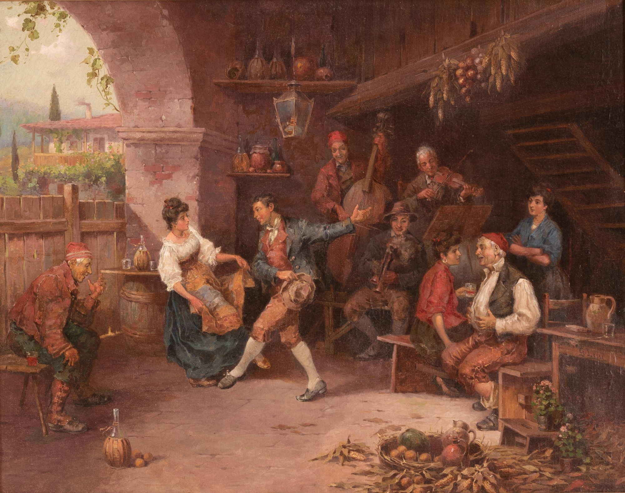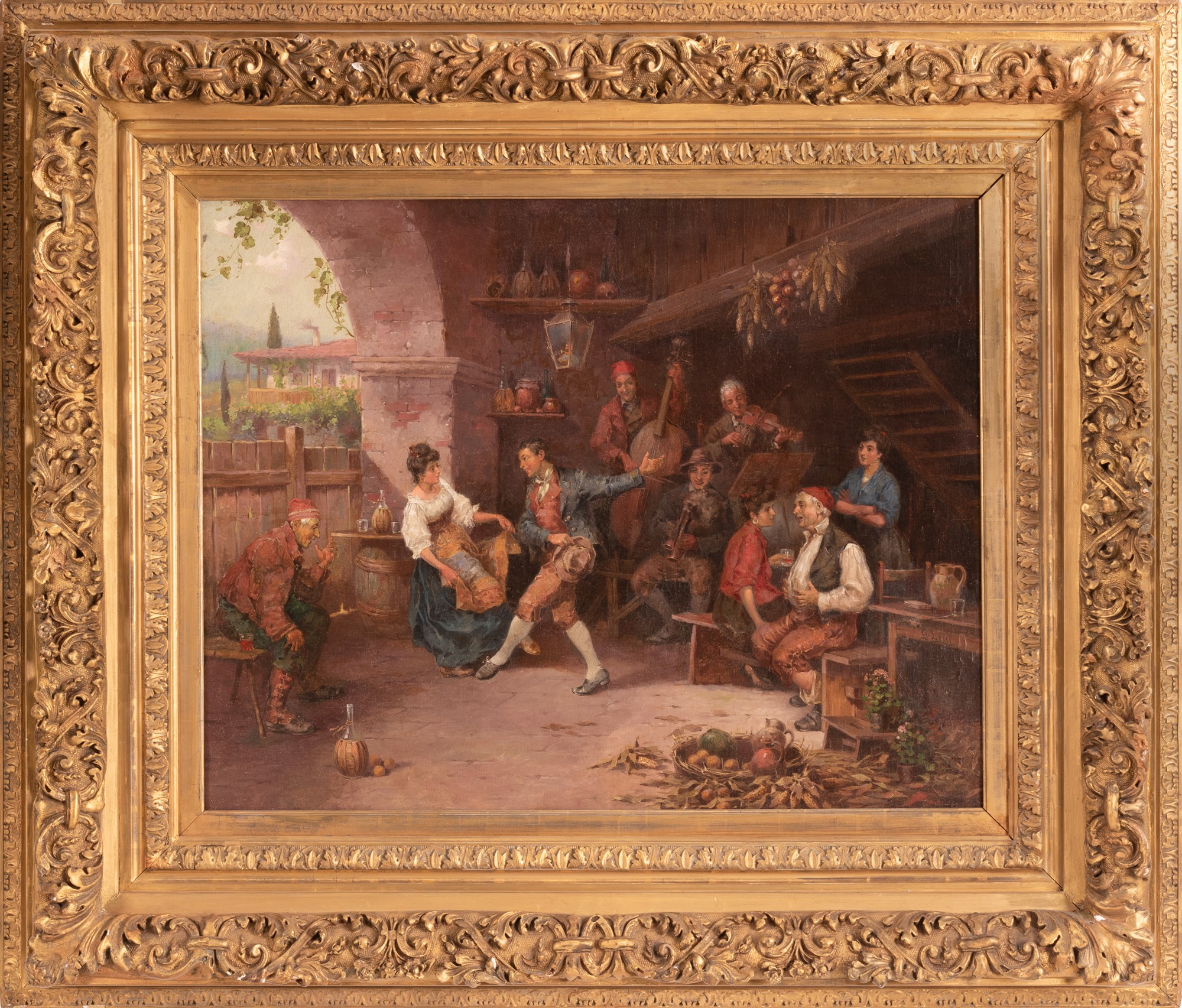 Giovanni Lessi (Firenze, 1852 - Firenze, 1922) In osteria Olio su tela cm 68x82; con cornice cm 105x123