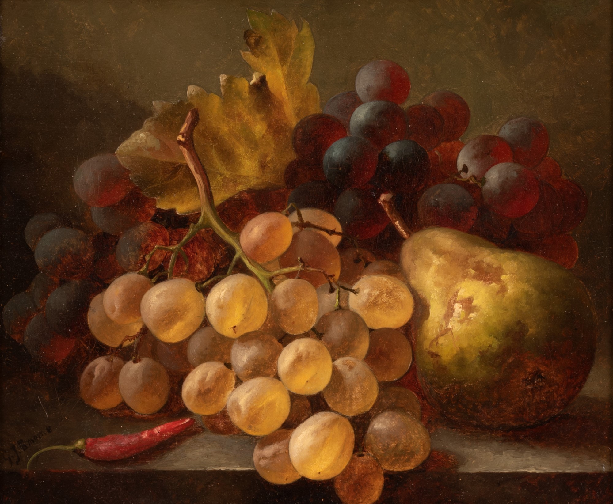 G.J. Broome (1867 - 1873) Natura morta con frutta XIX secolo olio su tela cm...