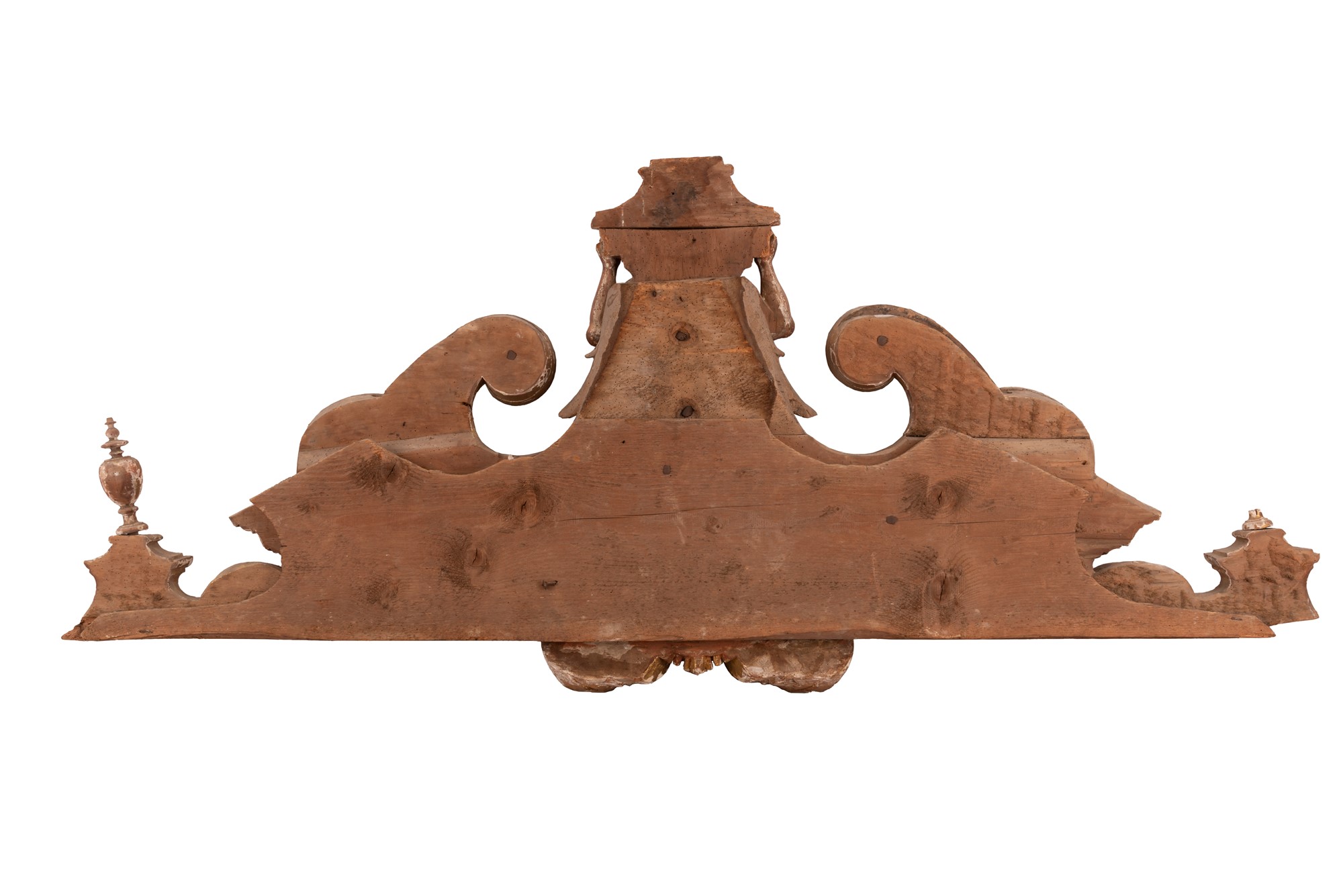 Grande fregio in legno scolpito dorato e laccato con cariatide e anfora XVI secolo