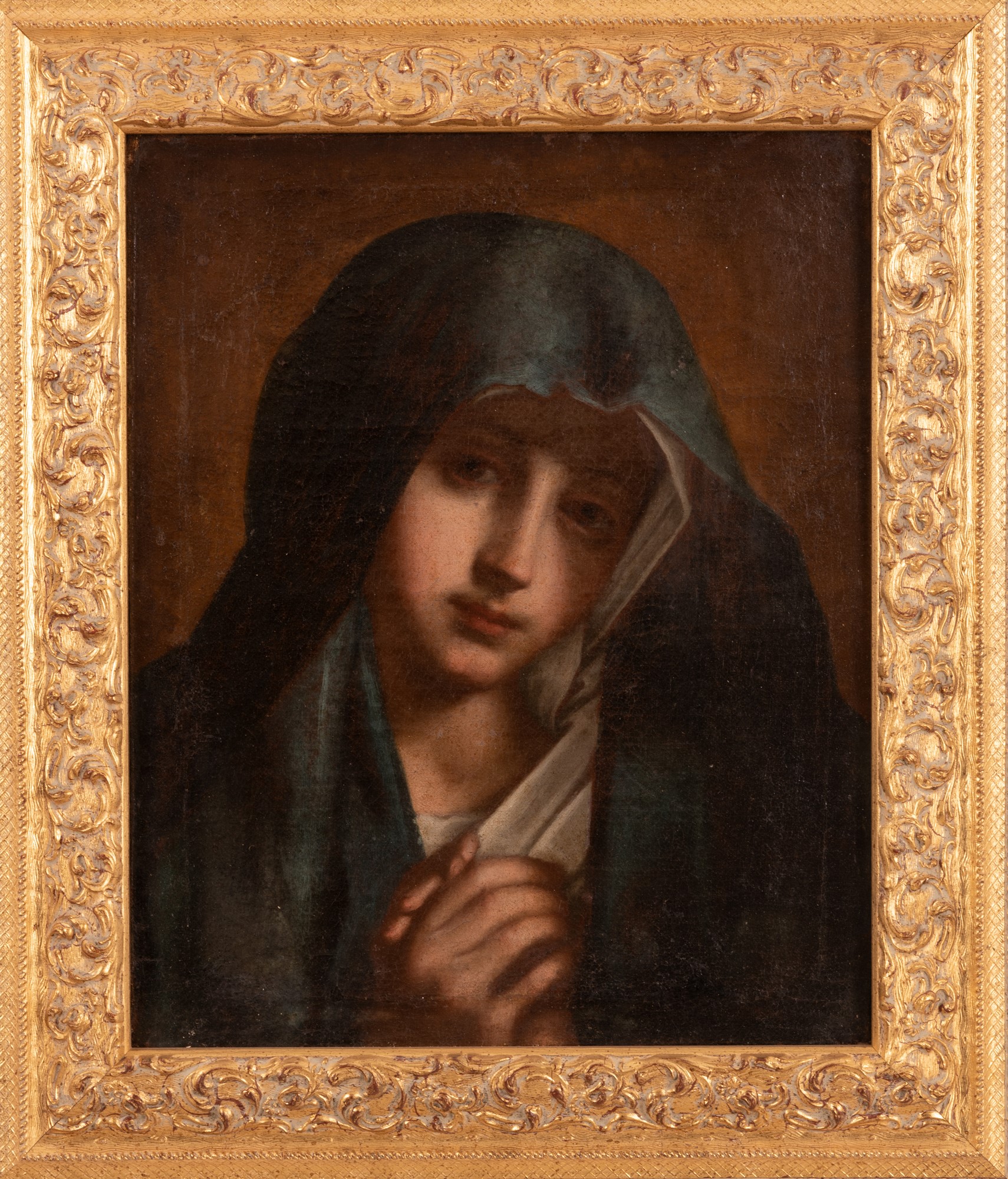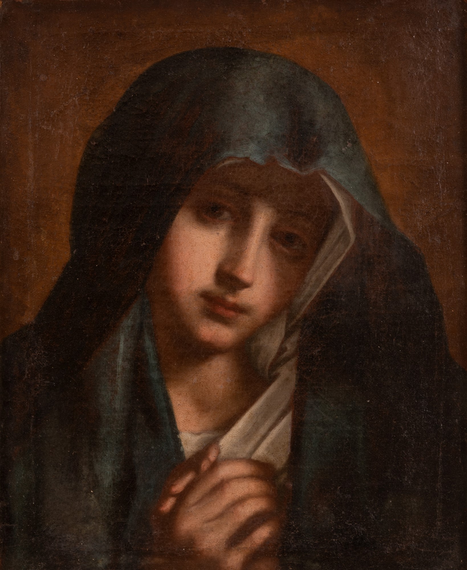 Pittore dell'Italia centrale da G.B. Salvi ( - ) Madonna addolorata XVIII secolo Olio su tela cm 47x38; con cornice cm 61x52