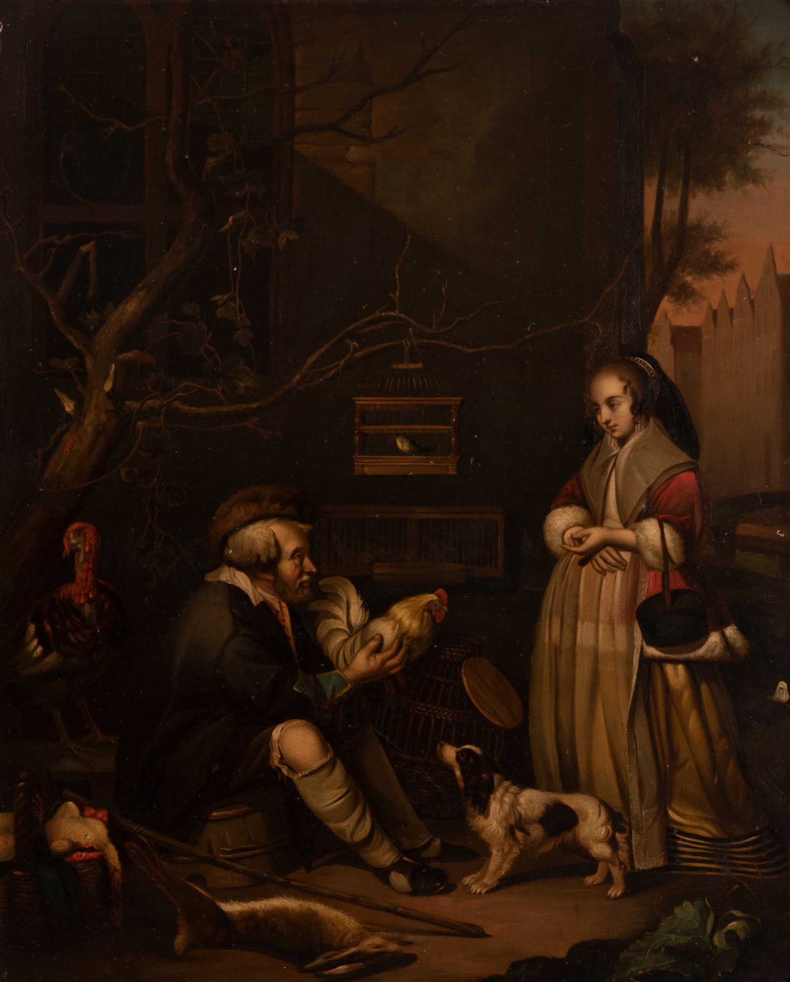 Lot 321 | Pittore fiammingo del XIX secolo ( - ) Scena di mercato Olio su metallo cm 40x32; con cornice cm 58x50