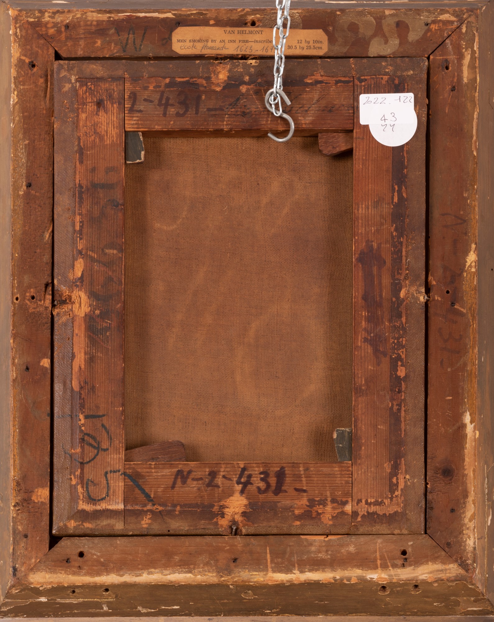 Pittore fiammingo del XIX secolo seguace di Mattheus Van Helmont ( - ) Fumatori di pipa in interno olio su tela cm 33x27; con cornice cm 45x39