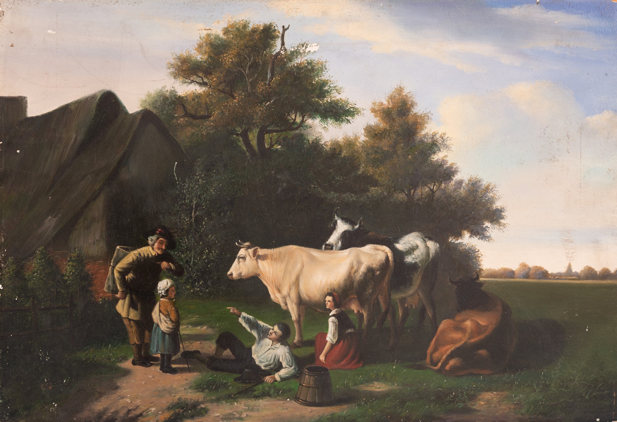 Lot 332 | Scuola olandese del XIX secolo ( - ) Paesaggio con pastori e armenti olio su tavola cm 35x52