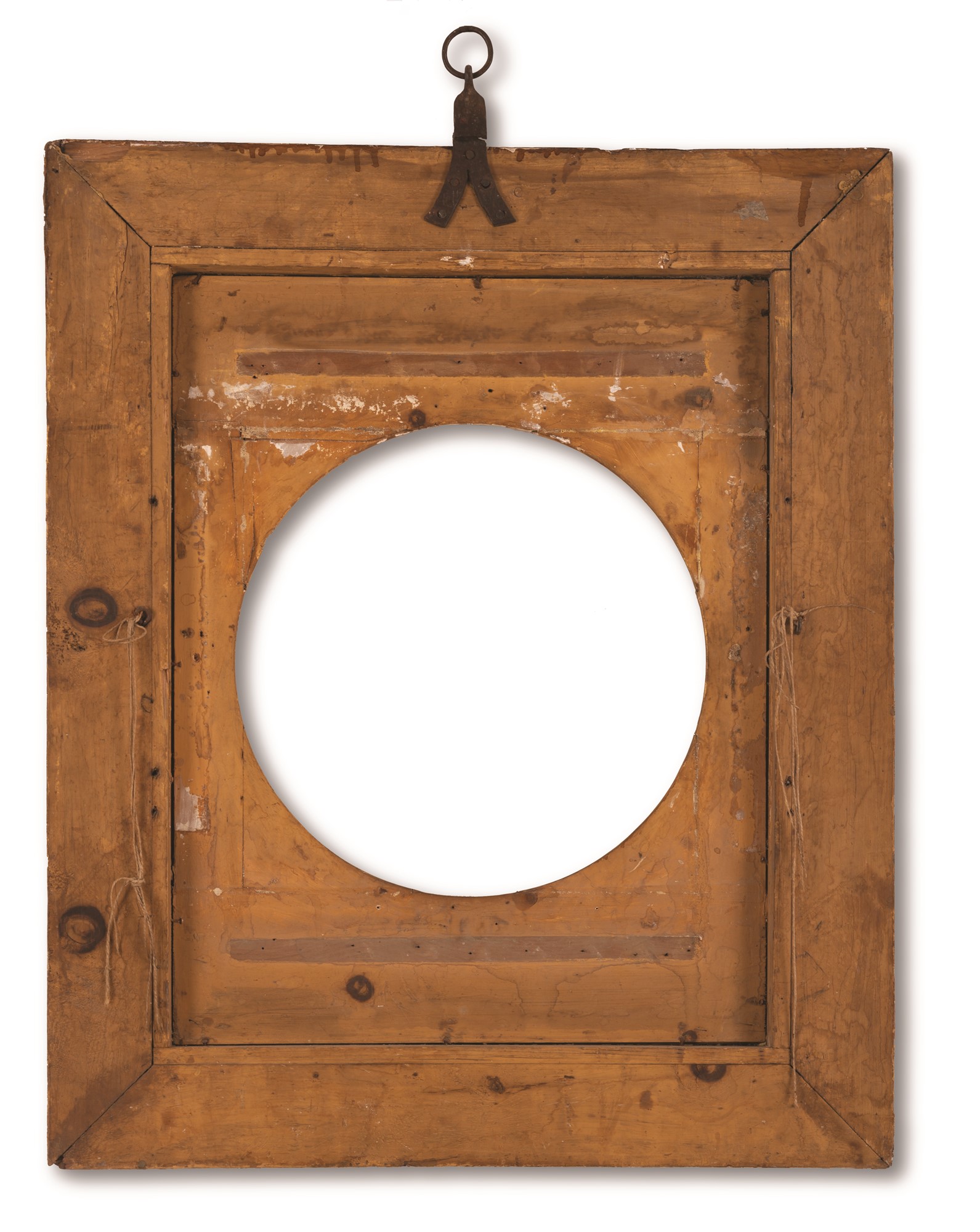 Manifattura dell'Italia centrale della fine del XVIII secolo ( - ) Cornice in legno e pastiglia dorata, decorata con volute e conchiglie. luce Ø cm 38; cornice cm 87x 68