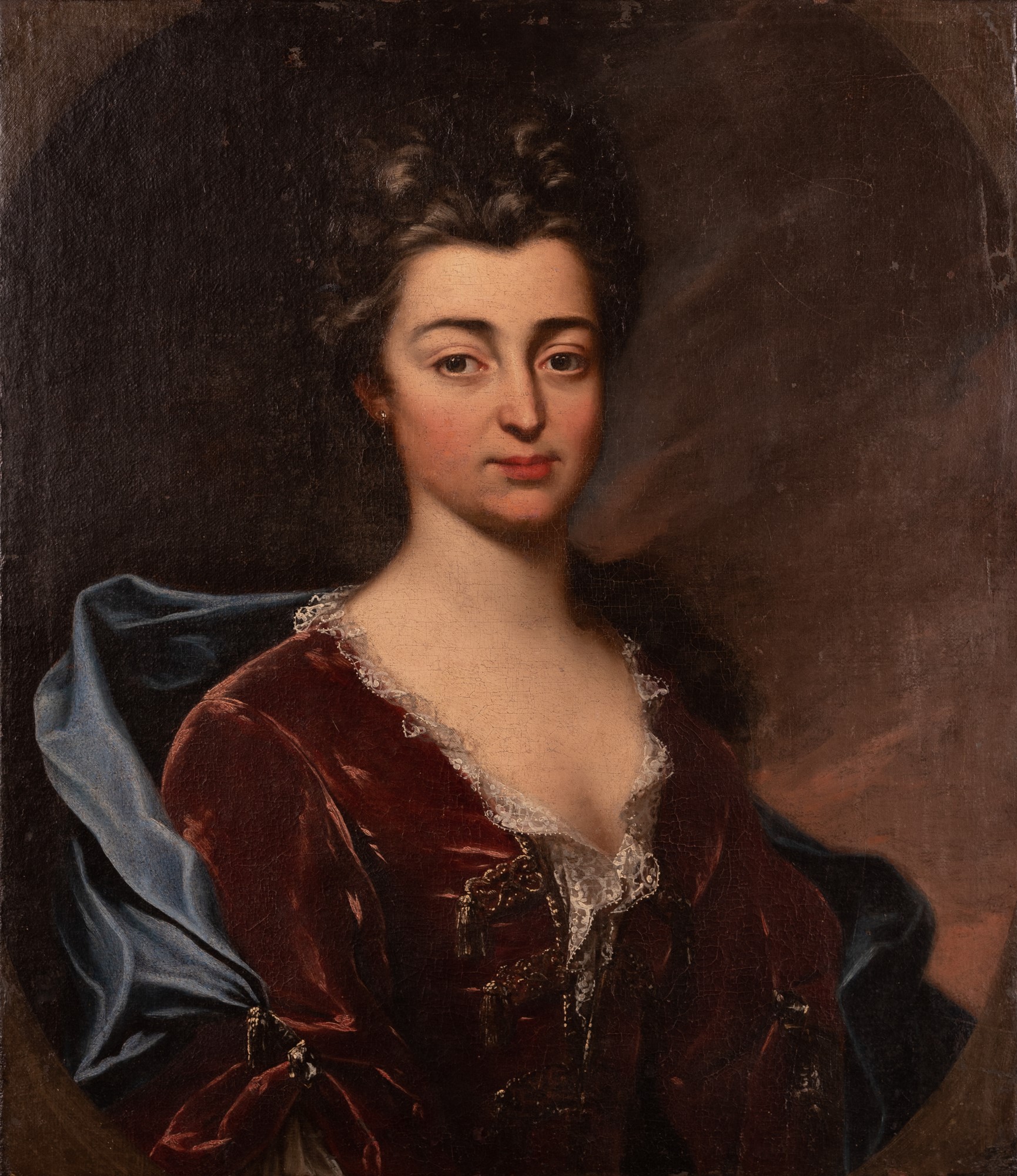 Scuola piemontese del XVIII secolo ( - ) Ritratto di dama Olio su tela ovale su campo rettangolare cm 70x60