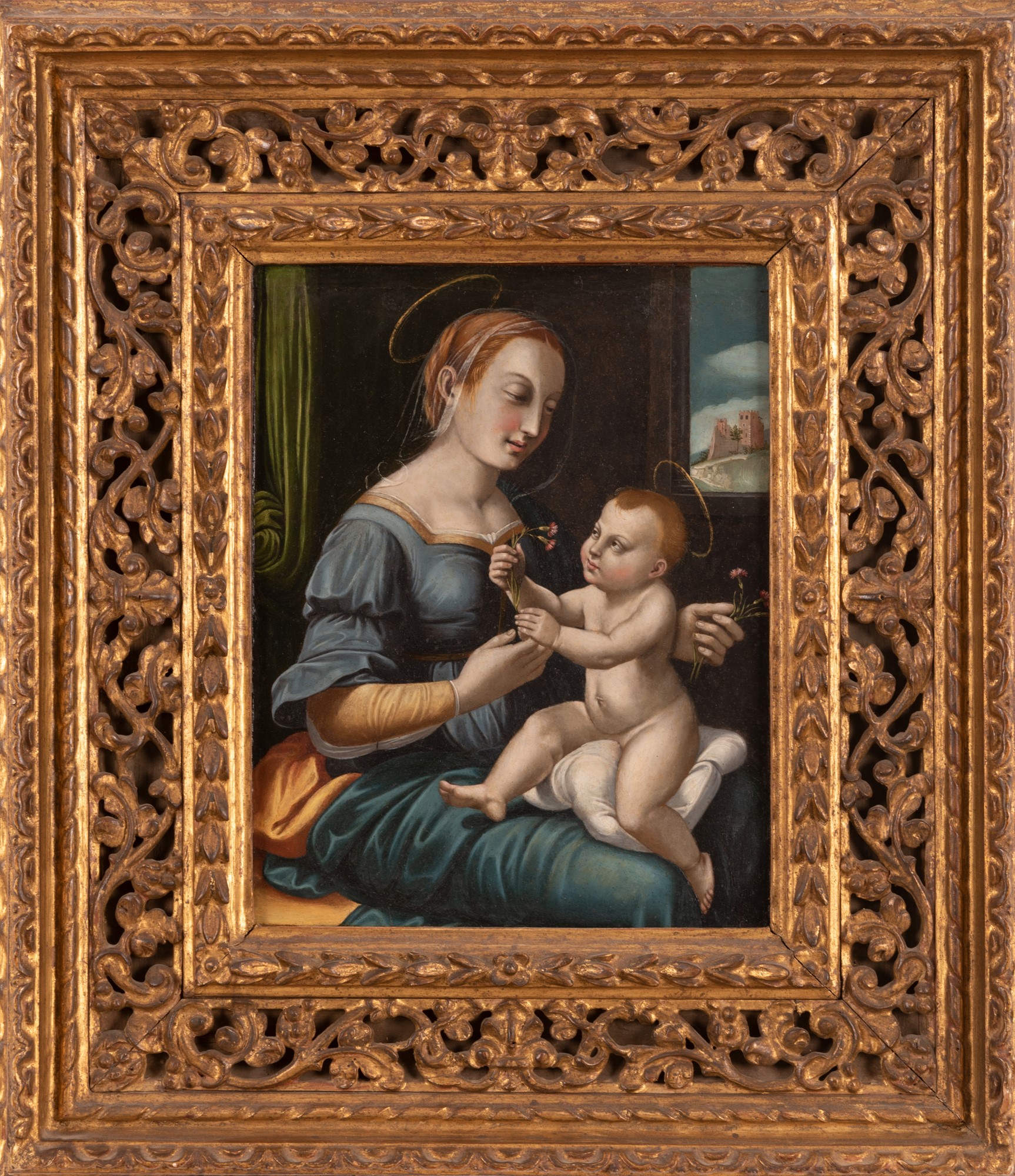 Lot 376 | Pittore europeo del XIX secolo ( - ) Madonna dei garofani (da Raffaello) olio su rame cm 30x24; con cornice cm 50x44