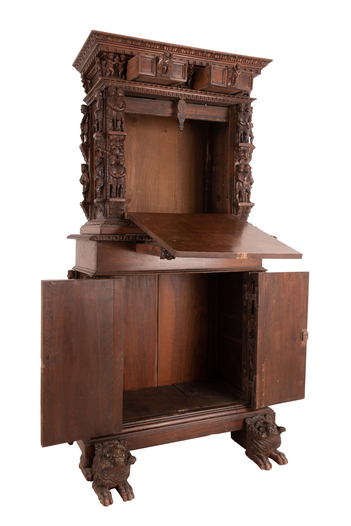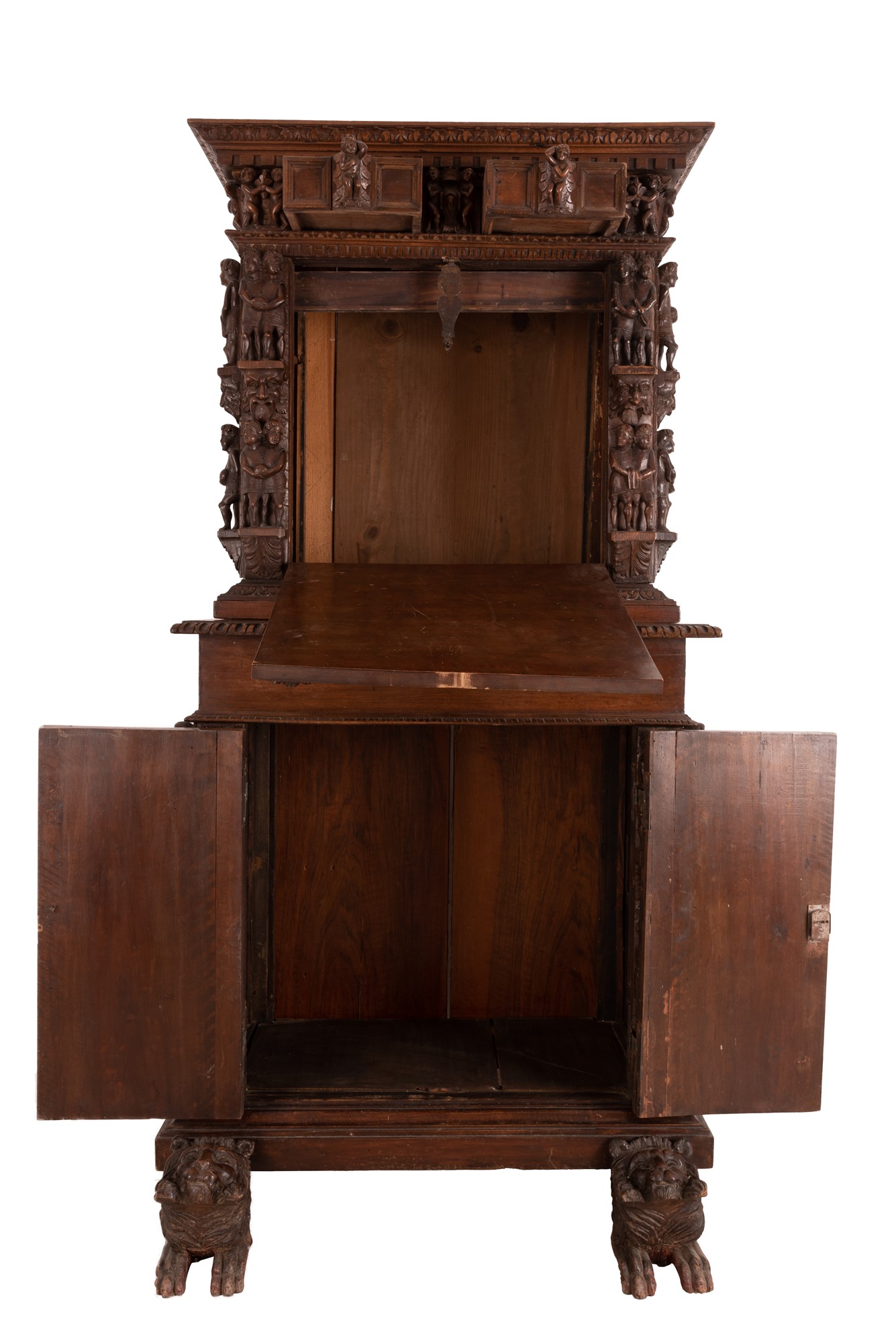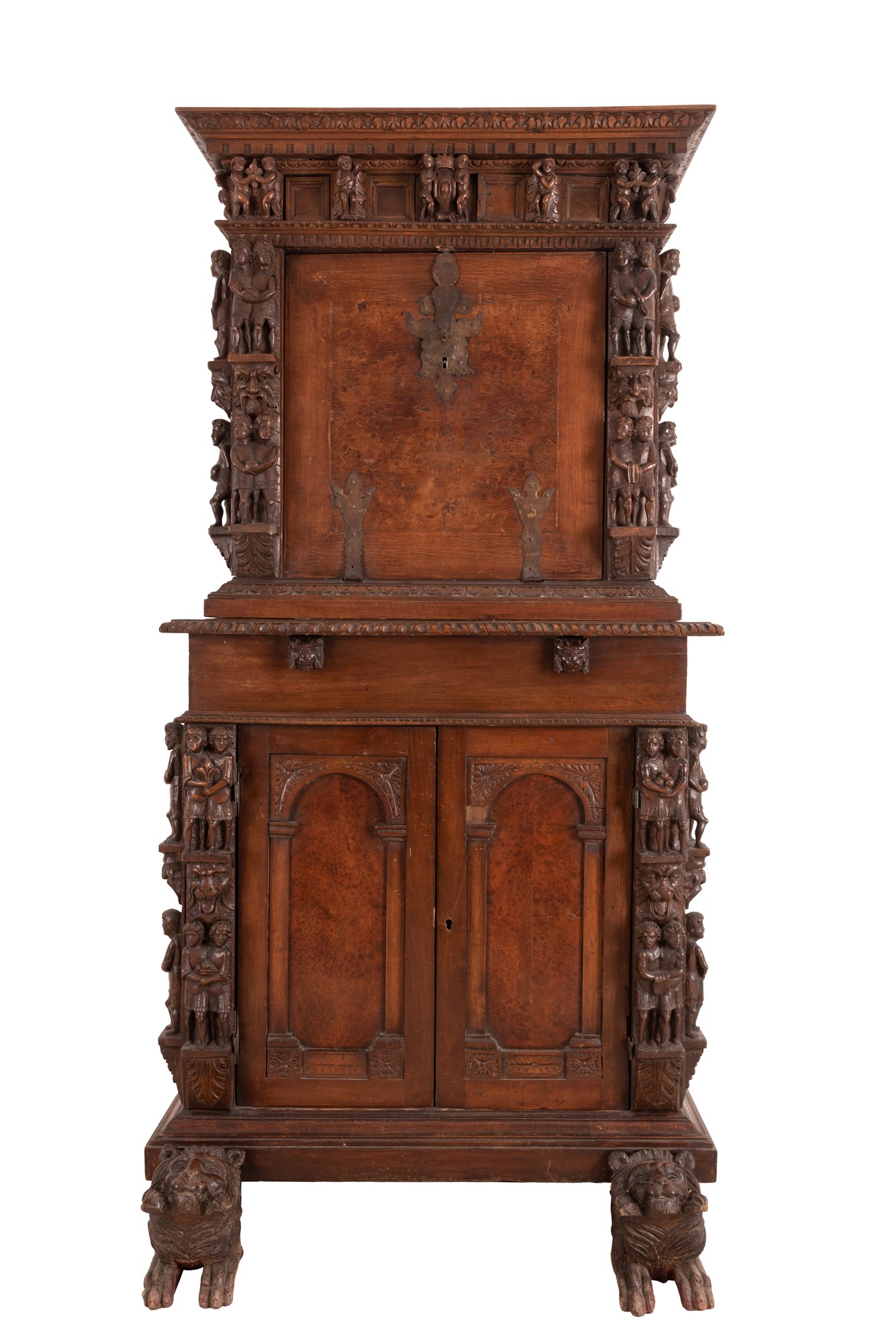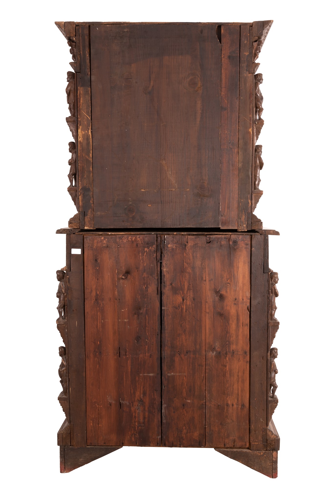 Manifattura genovese del primo quarto del XIX secolo ( - ) Mobile "a bambocci" di gusto rinascimentale in legni vari cm 187x94x65