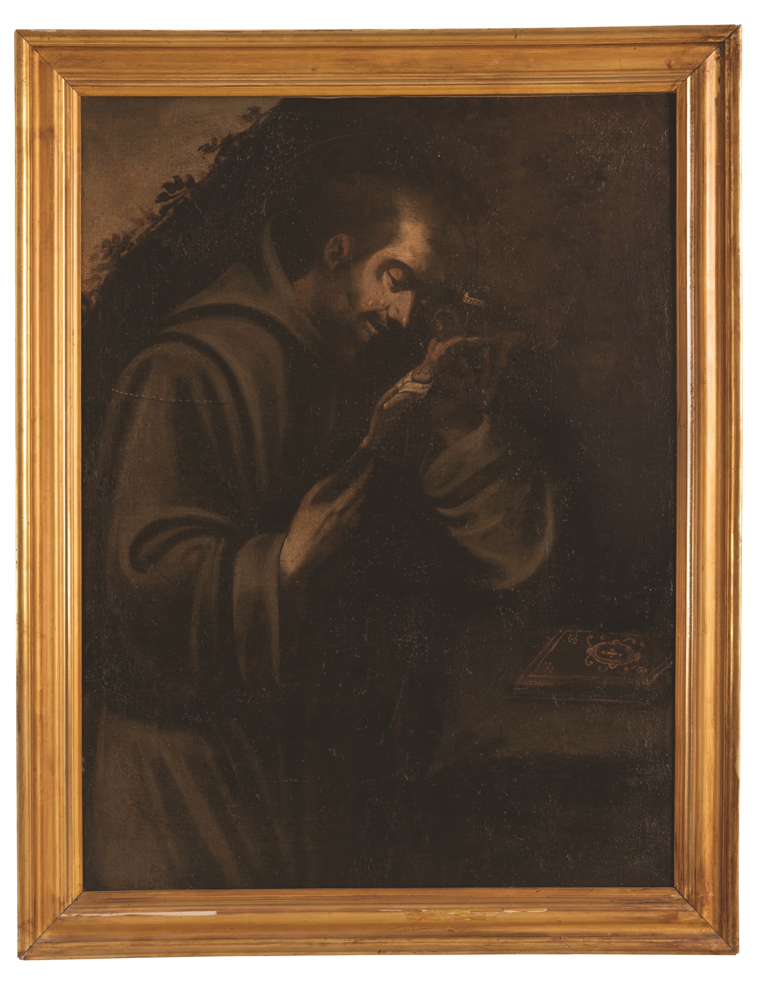 Lot 390 | Scuola Lombarda XVII secolo ( - ) San Francesco in adorazione del Crocifisso Olio su tela cm 90x68; con cornice cm 102x80