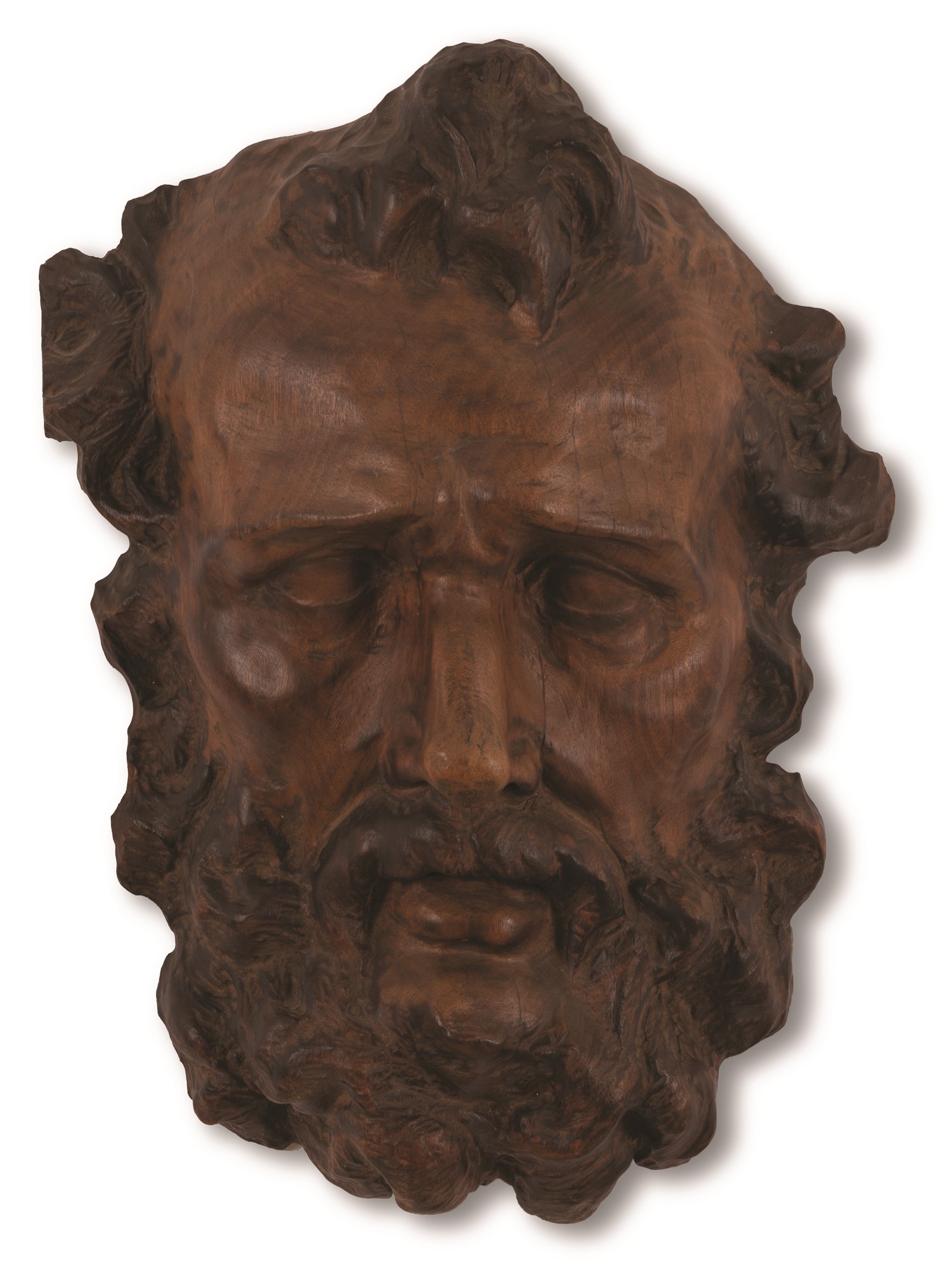 Bassorilievo in legno brunito raffigurante testa di San Pietro