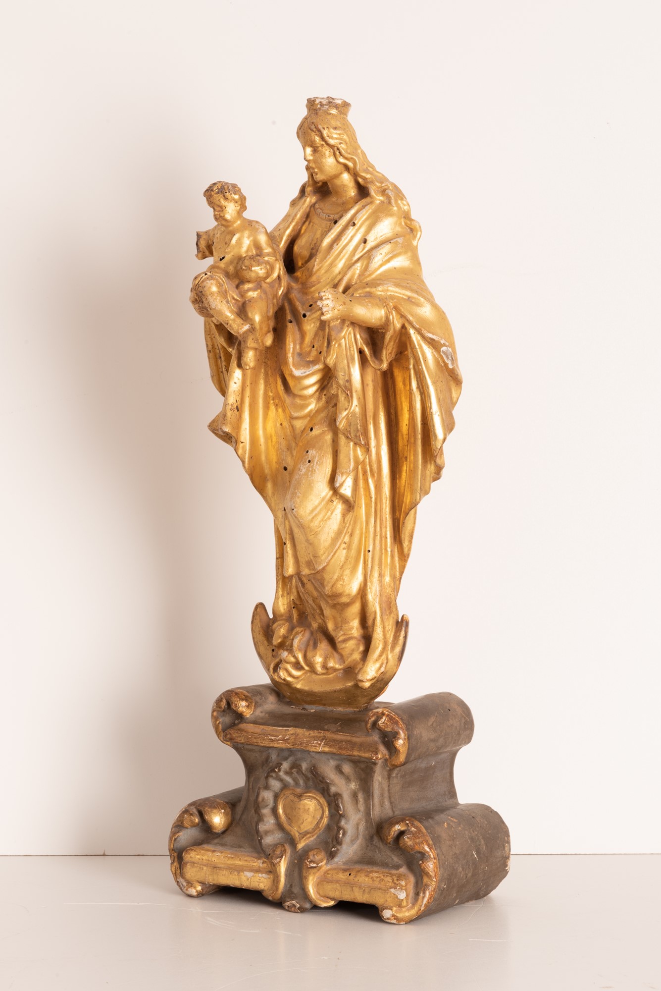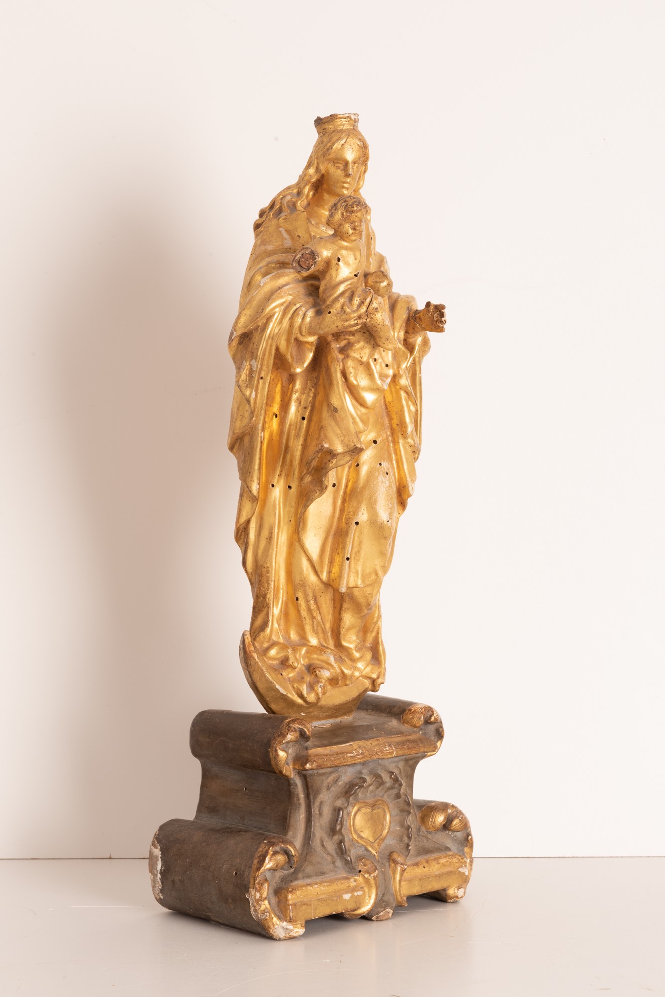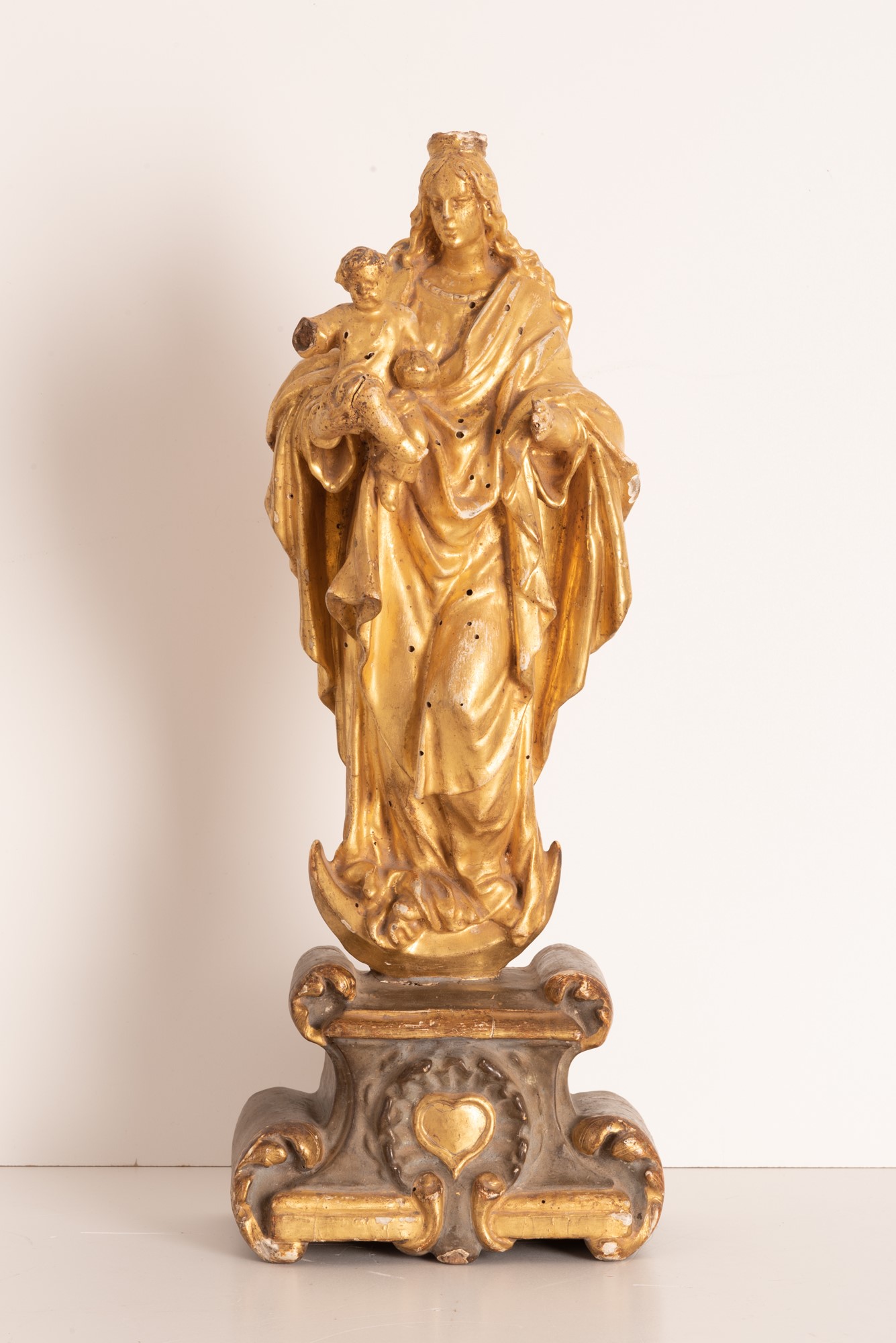 Lot 401 | Scultore del centro-Sud Italia attivo nel XVII secolo ( - ) Scultura in legno dorato raffigurante l'Immacolata altezza cm 50