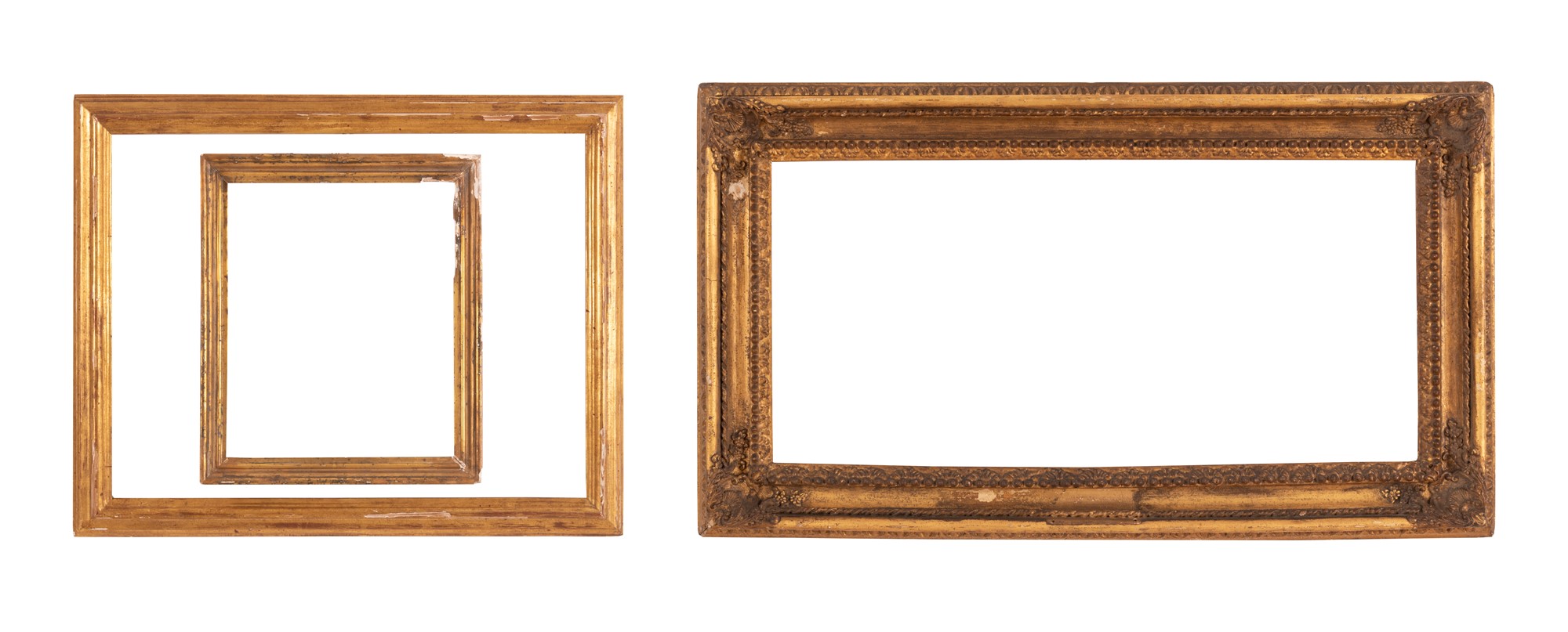 Lotto di 3 antiche cornici in legno dorato XVIII e XIX secolo