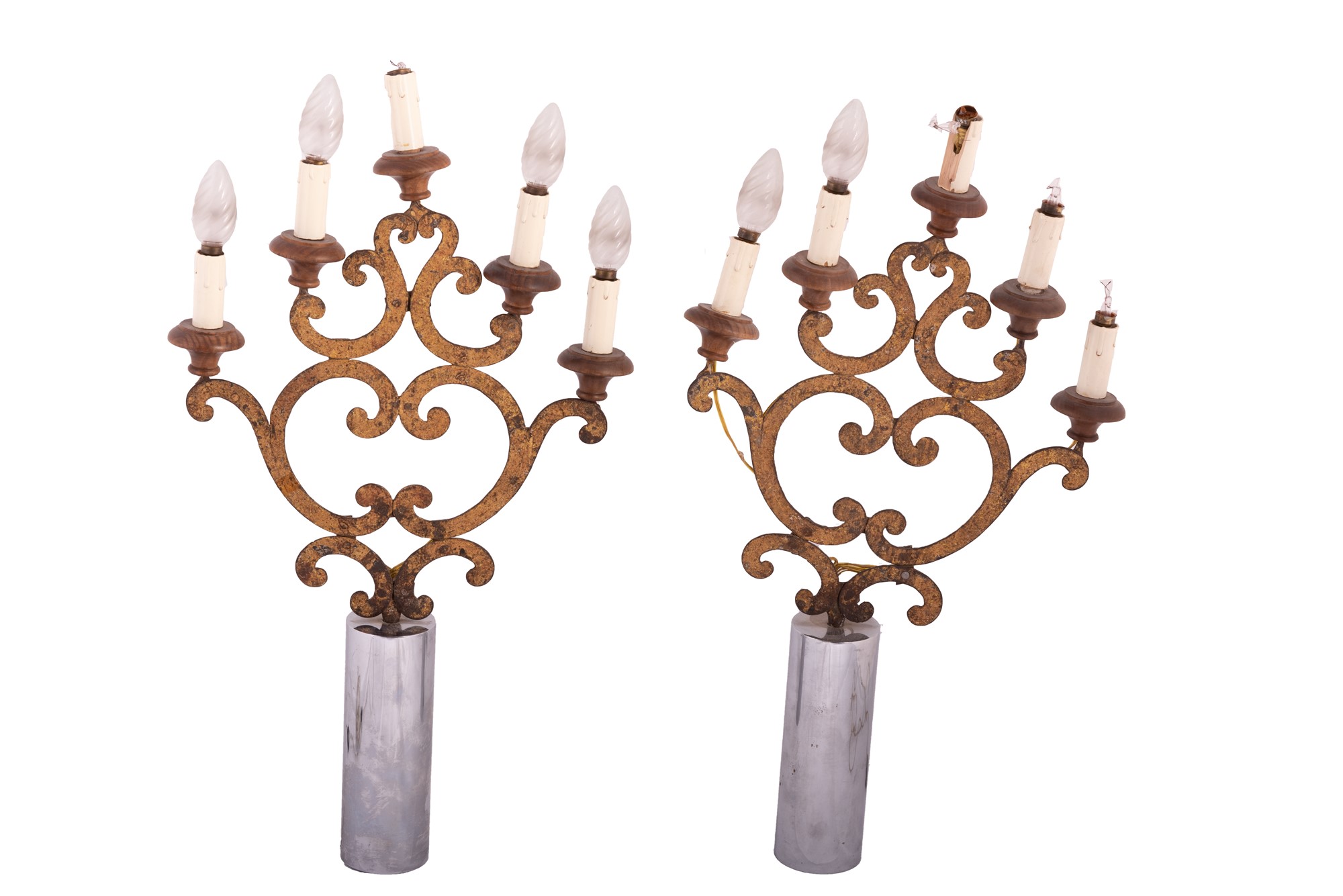 Manifattura romana del XVIII secolo ( - ) Coppia di candelabri a 5 fiamme Ferro battuto altezza cm 55