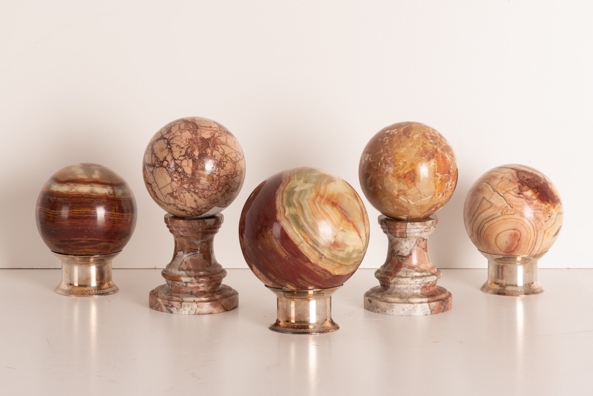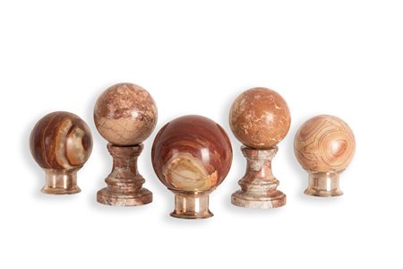 Lotto di 5 sfere di cui 3 in onice e 2 in marmo