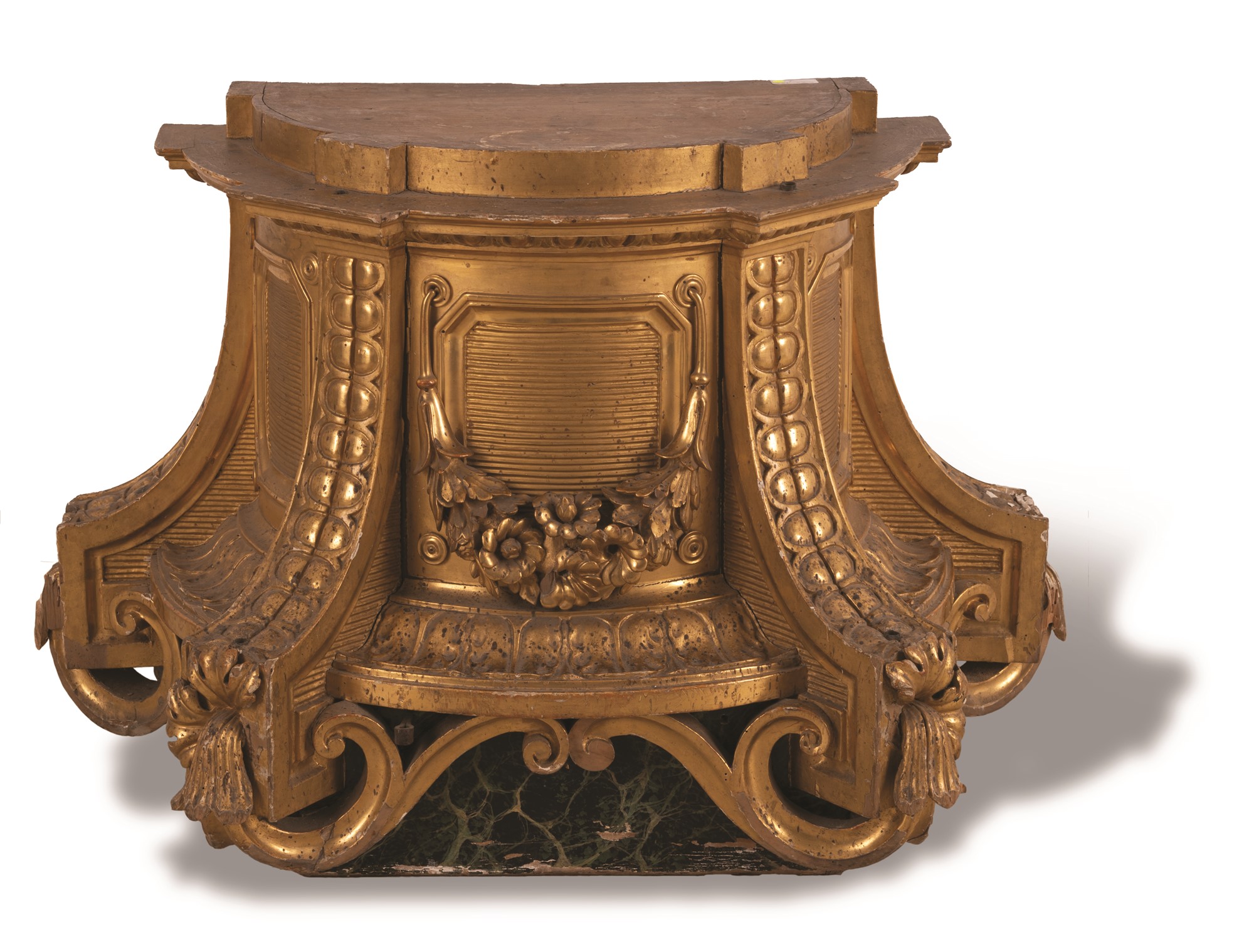 Base in legno dorato e lavorato con festoni di fiori incisi. Periodo Napoleone III