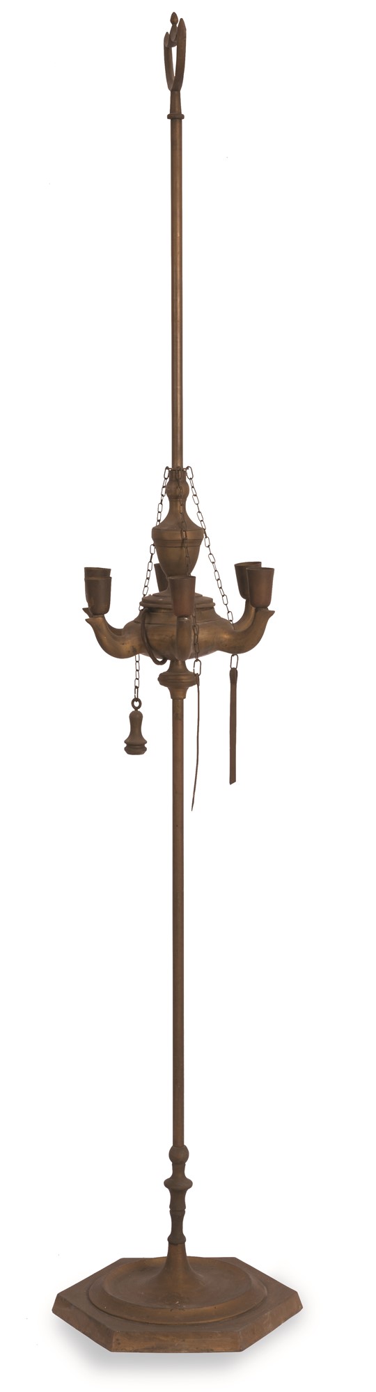 Manifattura dell'Italia centrale del XIX secolo ( - ) Lucerna in bronzo a sei luci altezzacm 136