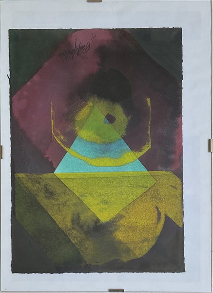 Paul Jenkins "Phenomenal Lamp" 1994 acquerello 1/1 su base litografica cm 25x16