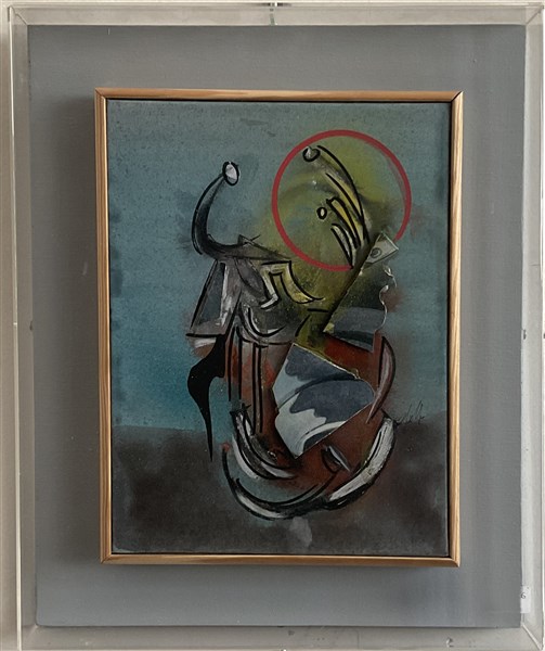 Sergio Dangelo "L'Académie de Paris" olio e collage su tela cm 24x18 firmato in