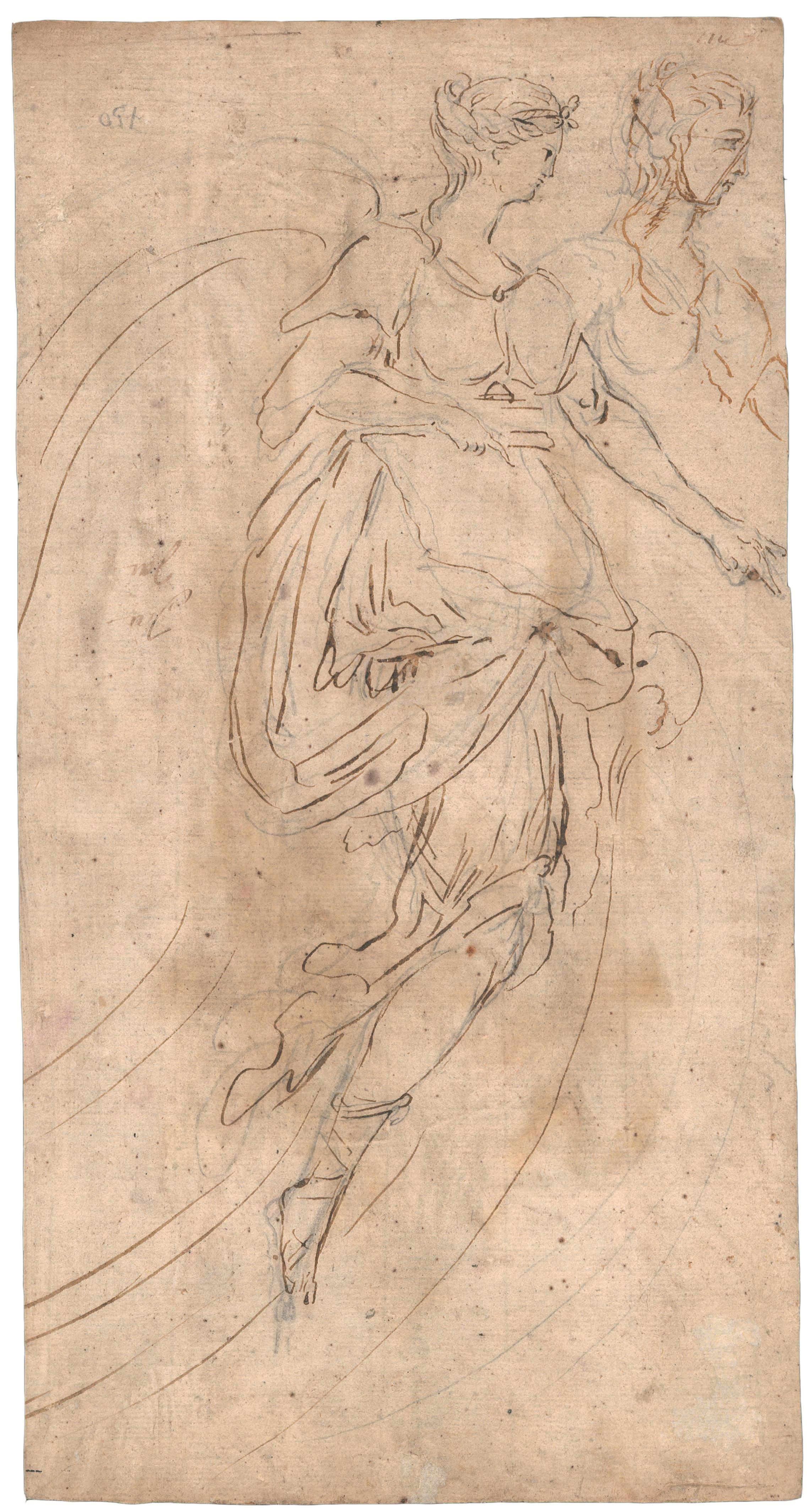 Al verso: Studio di divinità femminile. Penna e inchiostro bruno e matita di grafite.