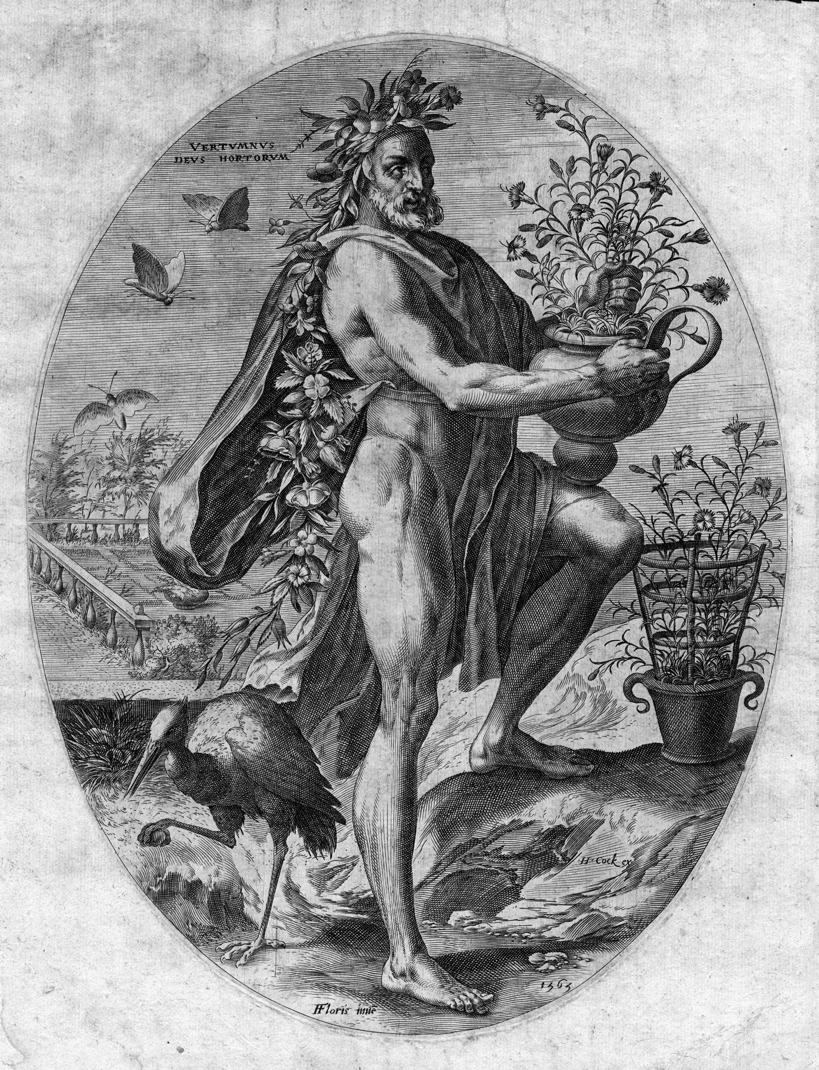 Cort, Cornelis(Hoorn 1533 - Roma 1578)VERTUMNUS. 1565Bulino. mm 287x218.TIB...