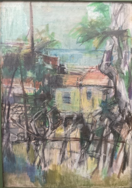Firma indecifrata "Senza titolo" pastelli su carta applicata su masonite