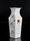 Cina, inizio XX secolo . . Cm 15,00 x 43,00. Vaso a sezione quadrata, l'esterno dipinto nei colori della famiglia rosa con uccelli su rami fioriti e lunga iscrizione.