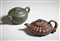 Cina, inizio XX secolo . . Cm 16,00 x 6,20. Include: tre teiere in forma vegetale e due con decorazioni fitomorfe.