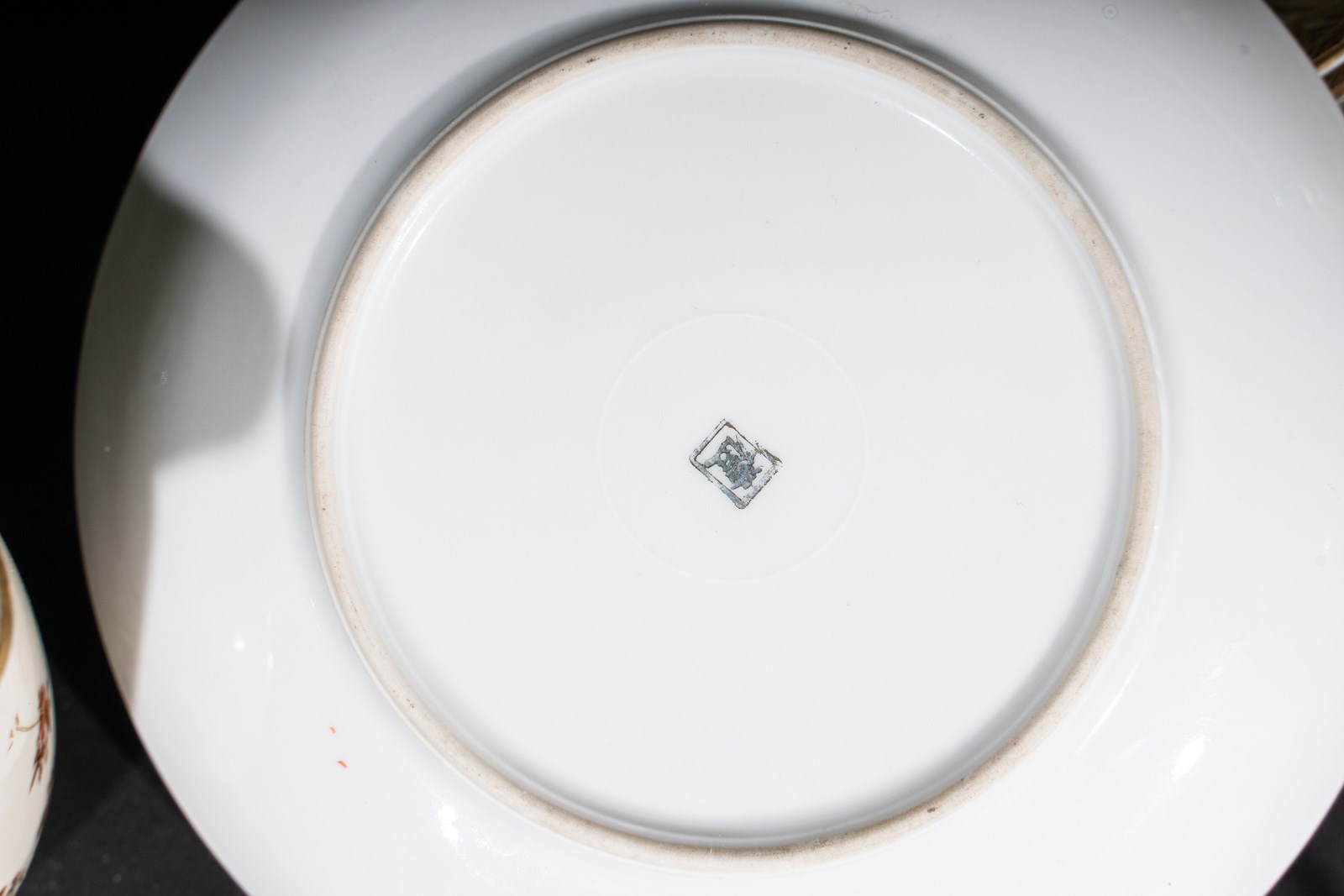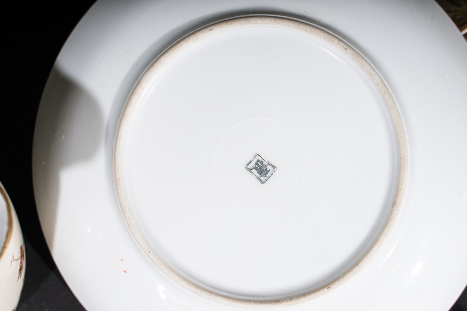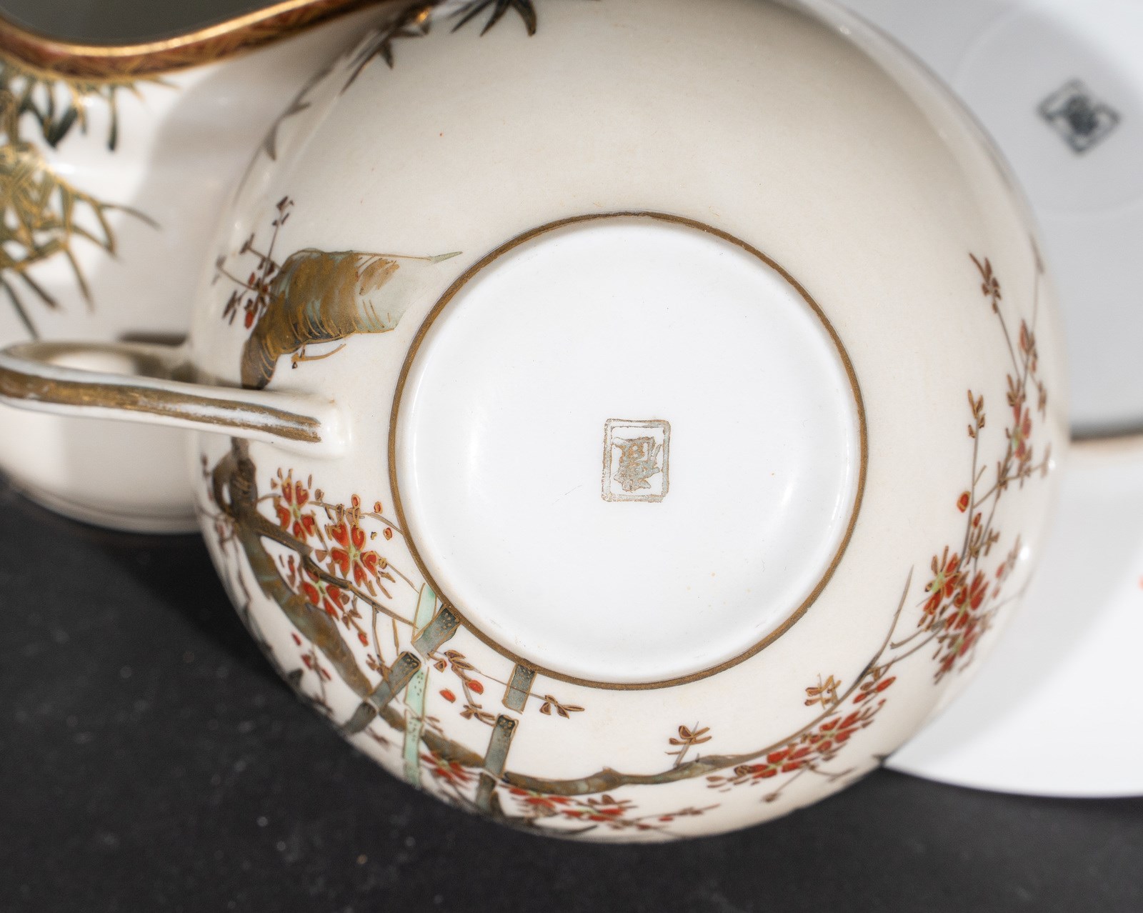 Giappone, XIX secolo . . . Lotto composto da otto tazze con piattino, una zuccheriera, una teiera ed un bricco per limone in porcellana bianca (forse Arita) con decoro a foglie di bambù e fiori con lumeggiature in oro.