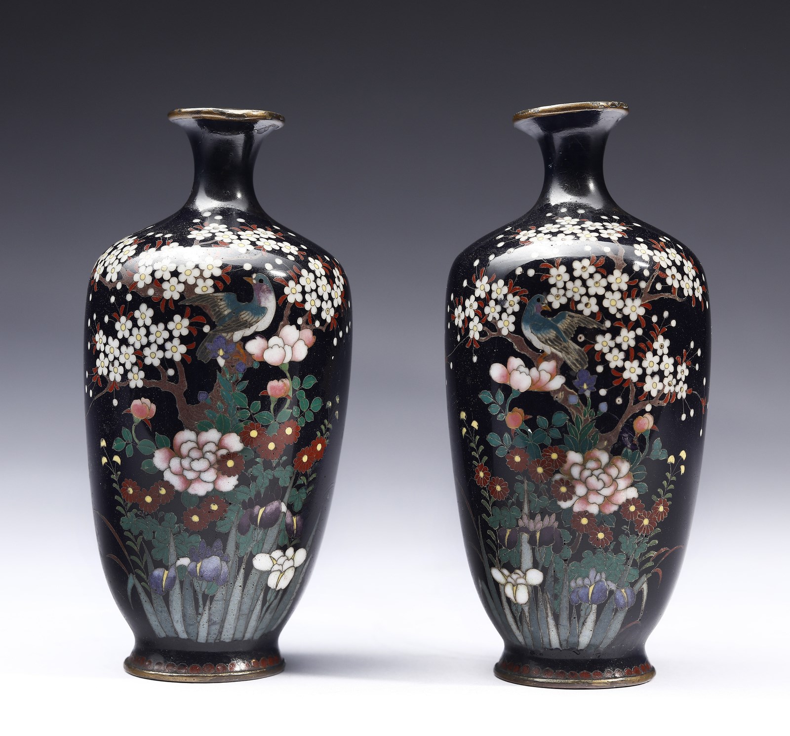 ARTE GIAPPONESE - Coppia di vasetti cloisonné Giappone, periodo Meiji, XIX secolo .