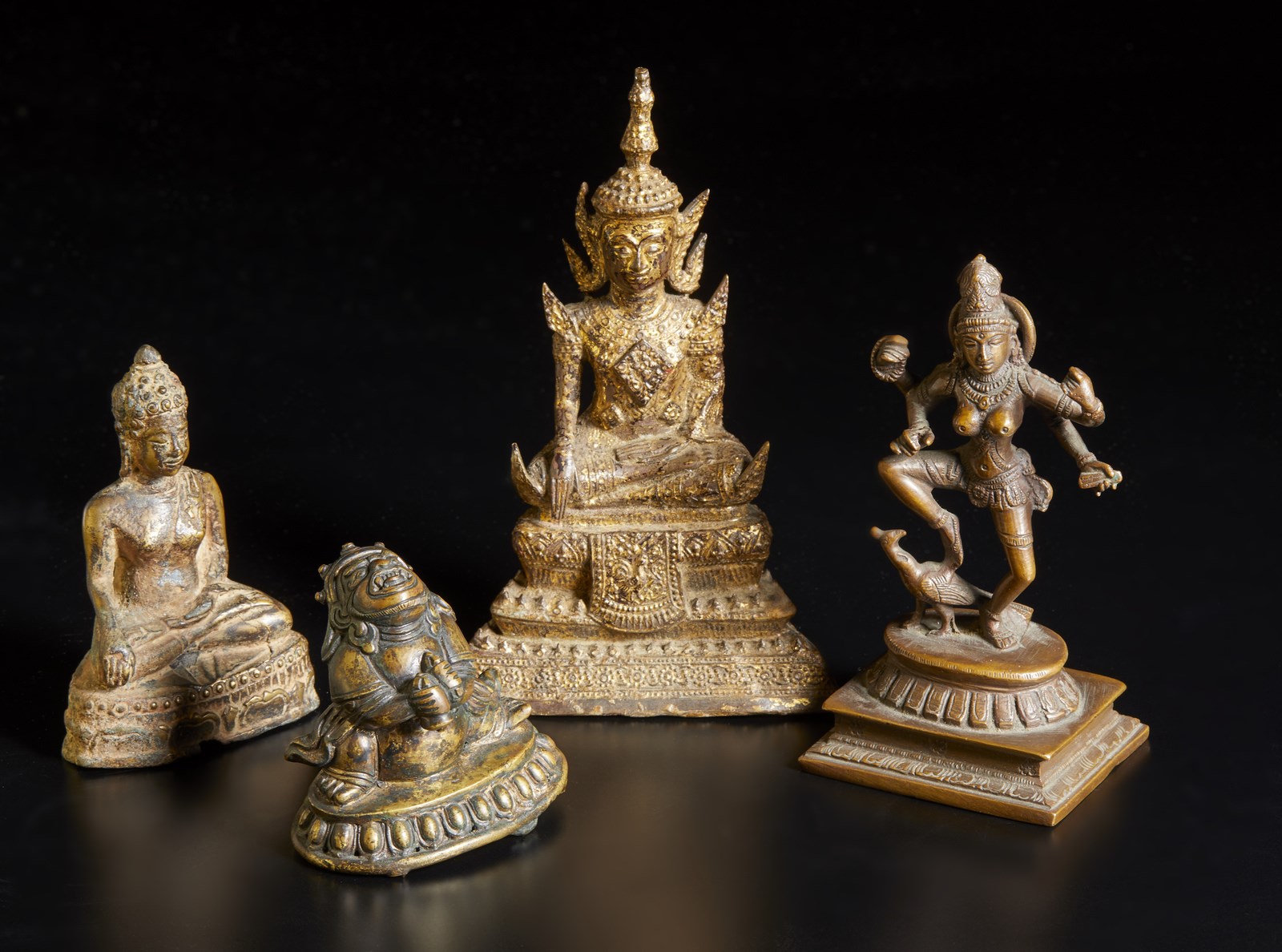 Arte Sud-Est Asiatico - Quattro sculture in bronzo Cina, India, Tailandia, XVIII-XIX secolo.