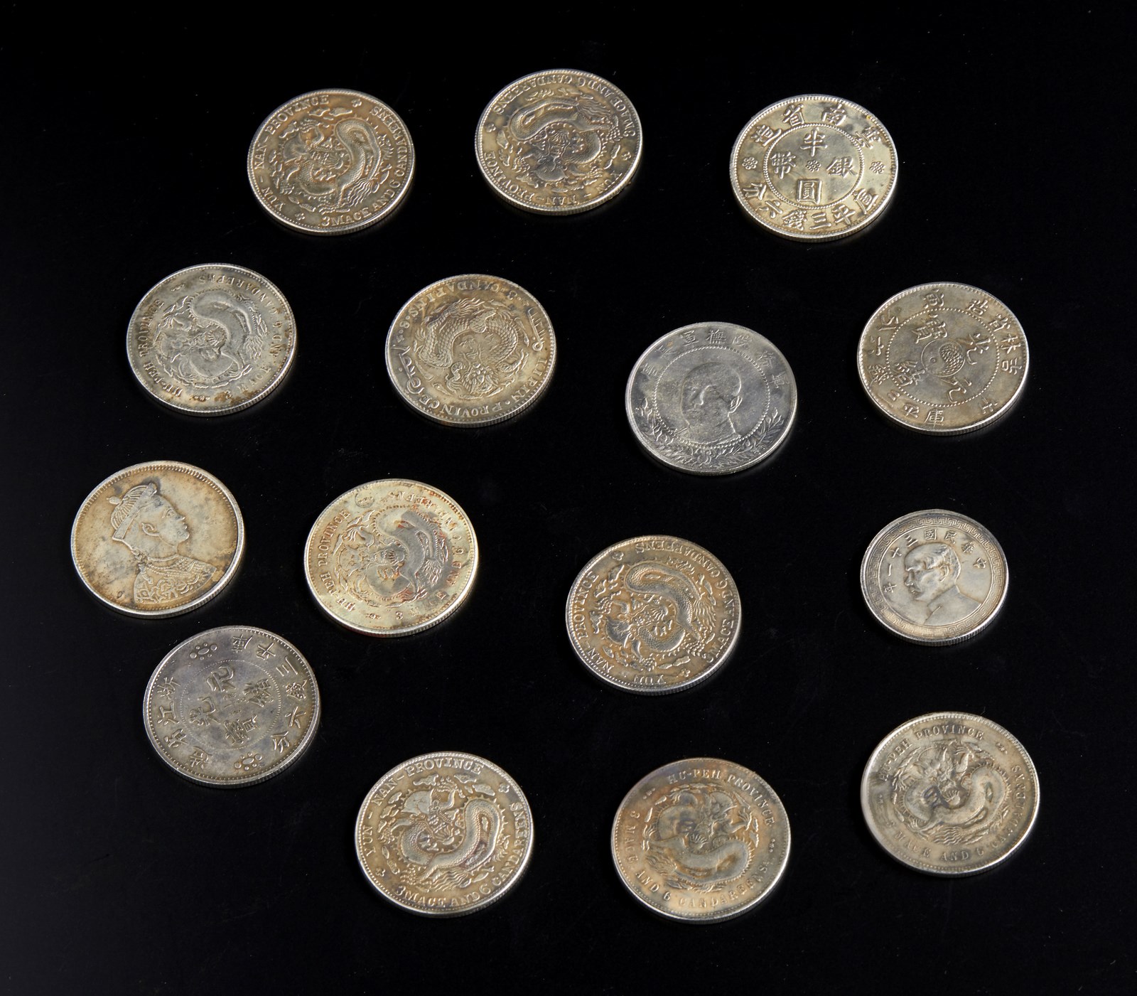 Arte Cinese - Lotto composto da 15 monete in argento Cina, inizio XX secolo .