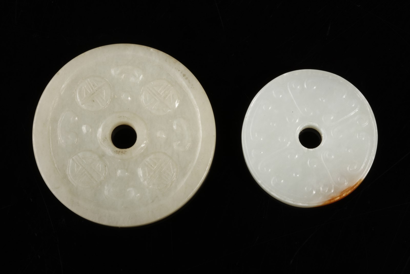 Arte Cinese Due manufatti in giada raffiguranti dischi pi lavorati a chicco di miglio