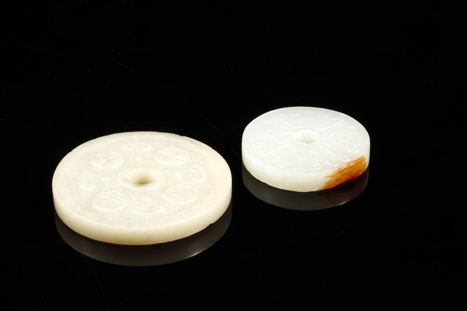 Arte Cinese - Due manufatti in giada raffiguranti dischi pi lavorati a chicco di miglio Cina, XX secolo .