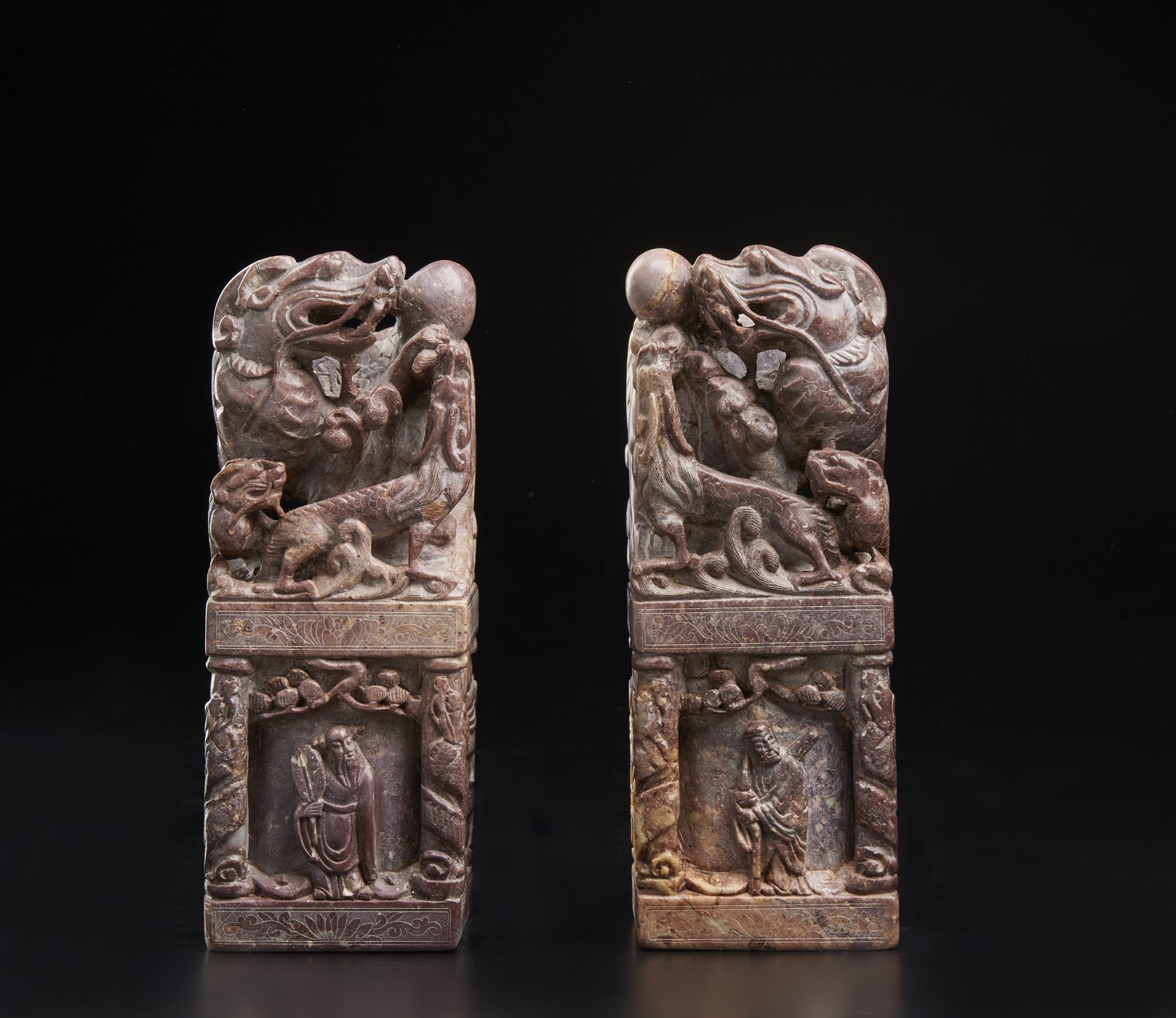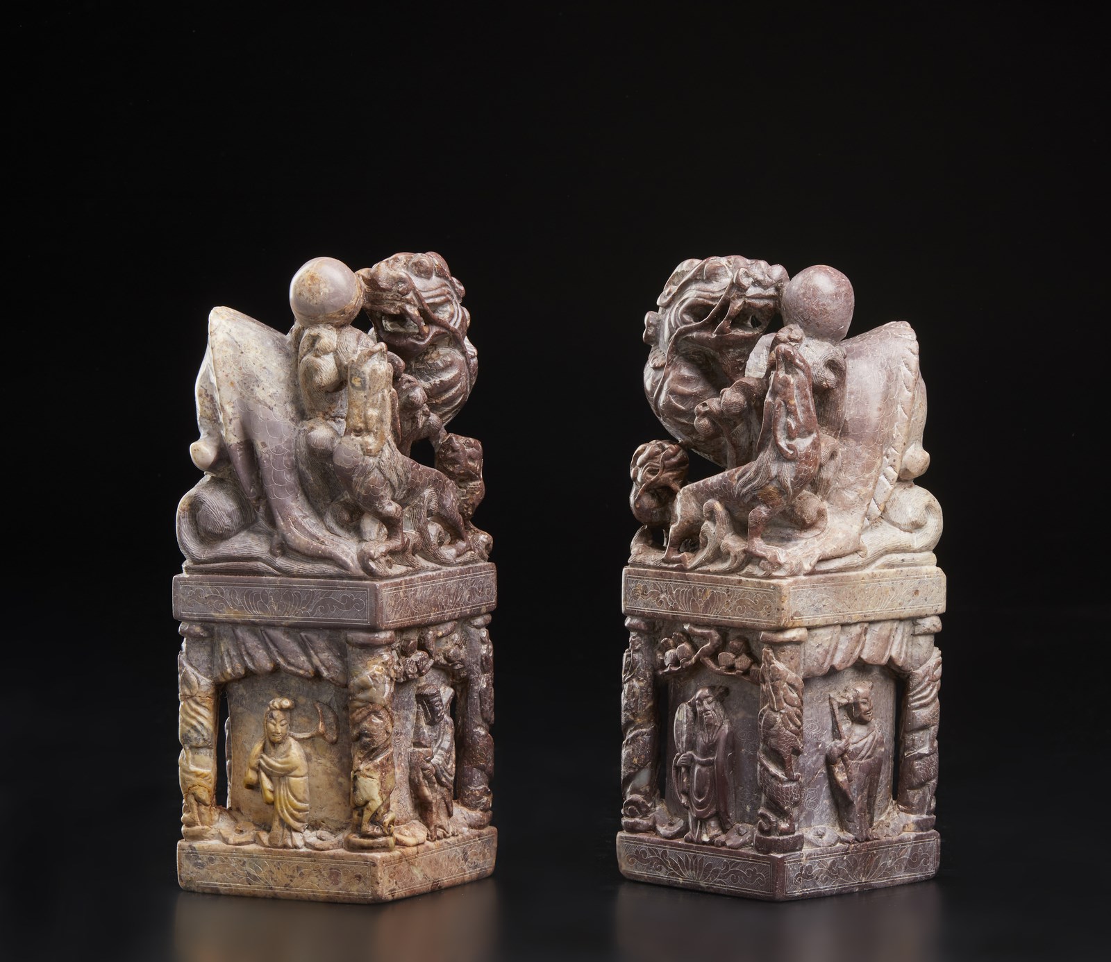 Arte Cinese - Coppia di sigilli in pietra Cina, dinastia Qing, XIX secolo .