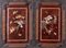 Giappone, XX secolo . . Cm 50,00 x 74,00. Due pannelli in legno e legno dipinto con decorazione parzialmente a rilievo raffigurante uccelli ricoperti di madreperla su rami fioriti. Altre parti della decorazione sono in resina.
