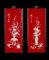 Cina, inizi XX secolo. . Cm 25,00 x 61,00. Coppia di pannelli decorativi in lacca rossa con decoro a rilievo di vasi e rami fioriti realizzati in madreperla