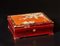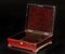 Giappone, periodo Meiji, XIX secolo. . Cm 26,00 x 8,50 x 23,00. Scatola quadrangolare in legno laccato rosso con decoro ad inserti in madreperla.