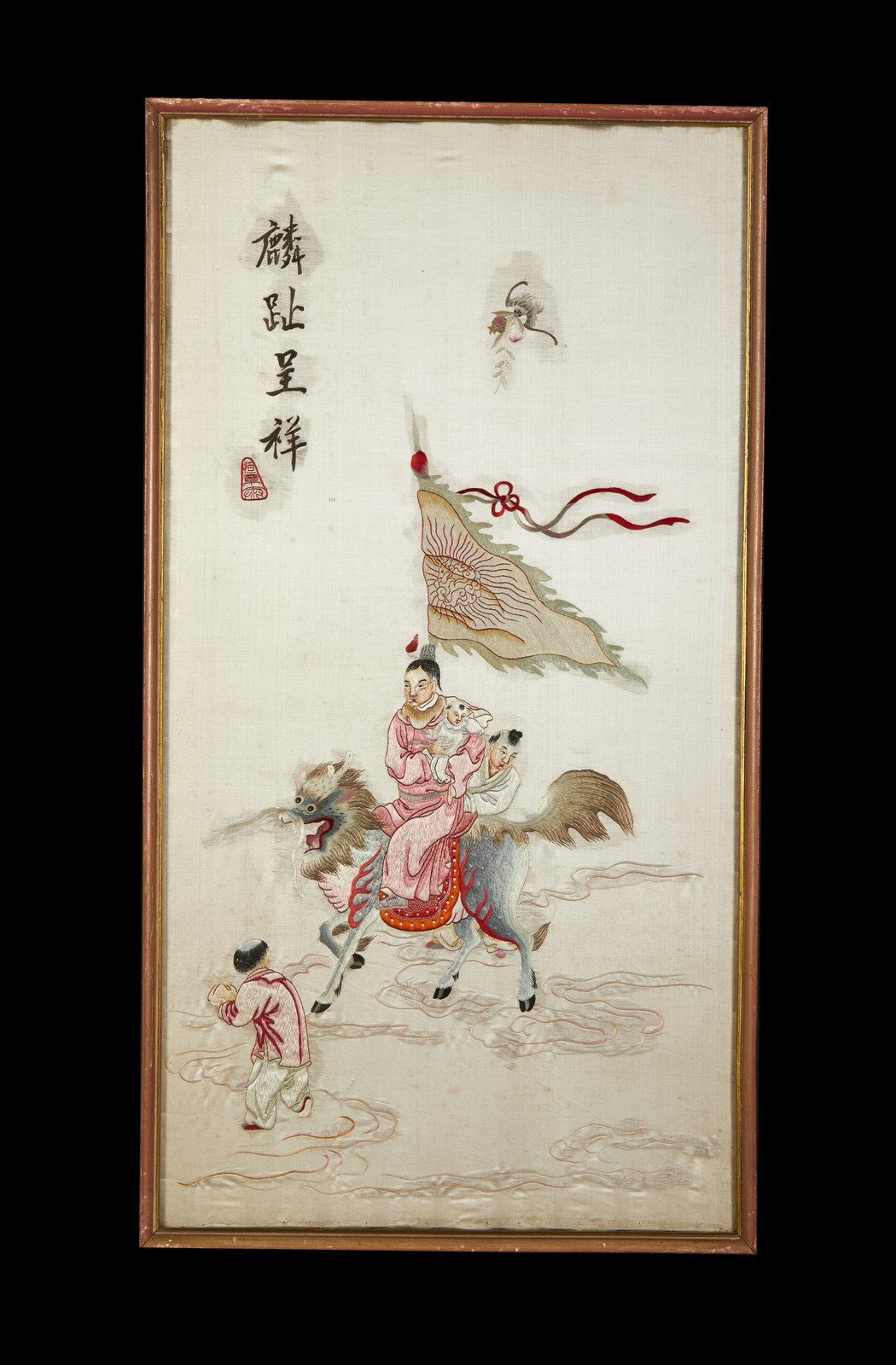 Arte Cinese - Gruppo di ricami e stampa entro cornice Cina, XX secolo .