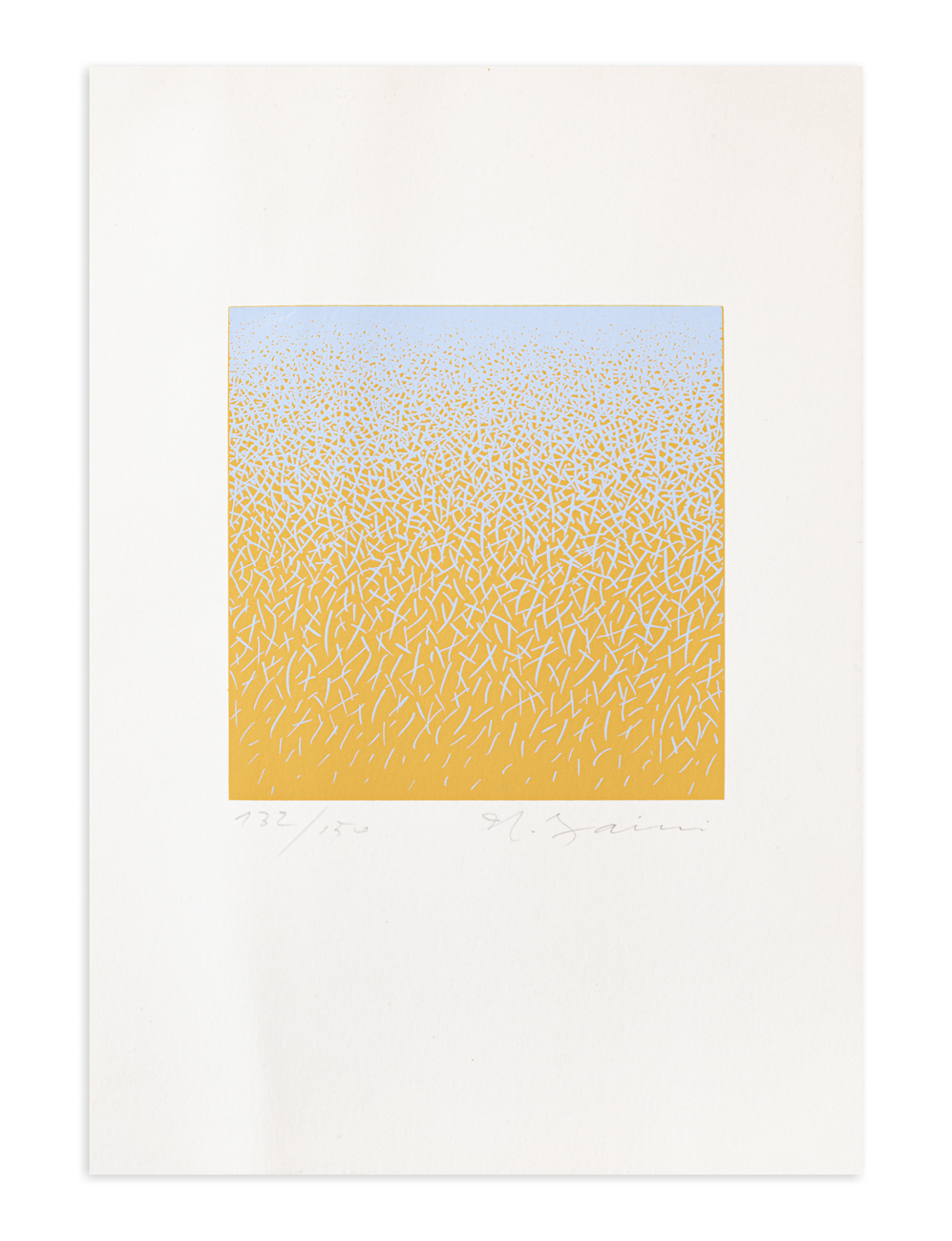 Firma e numerazione (Esemplare 132/150) a matita al fronte