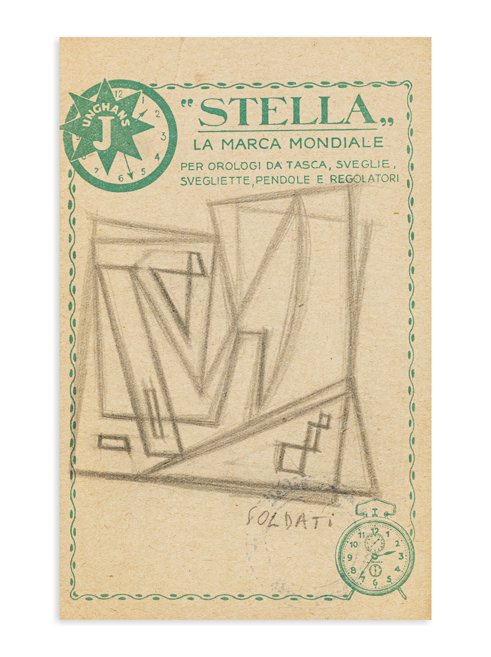 Timbro 'Opere inventariate di Atanasio Soldati' al retro