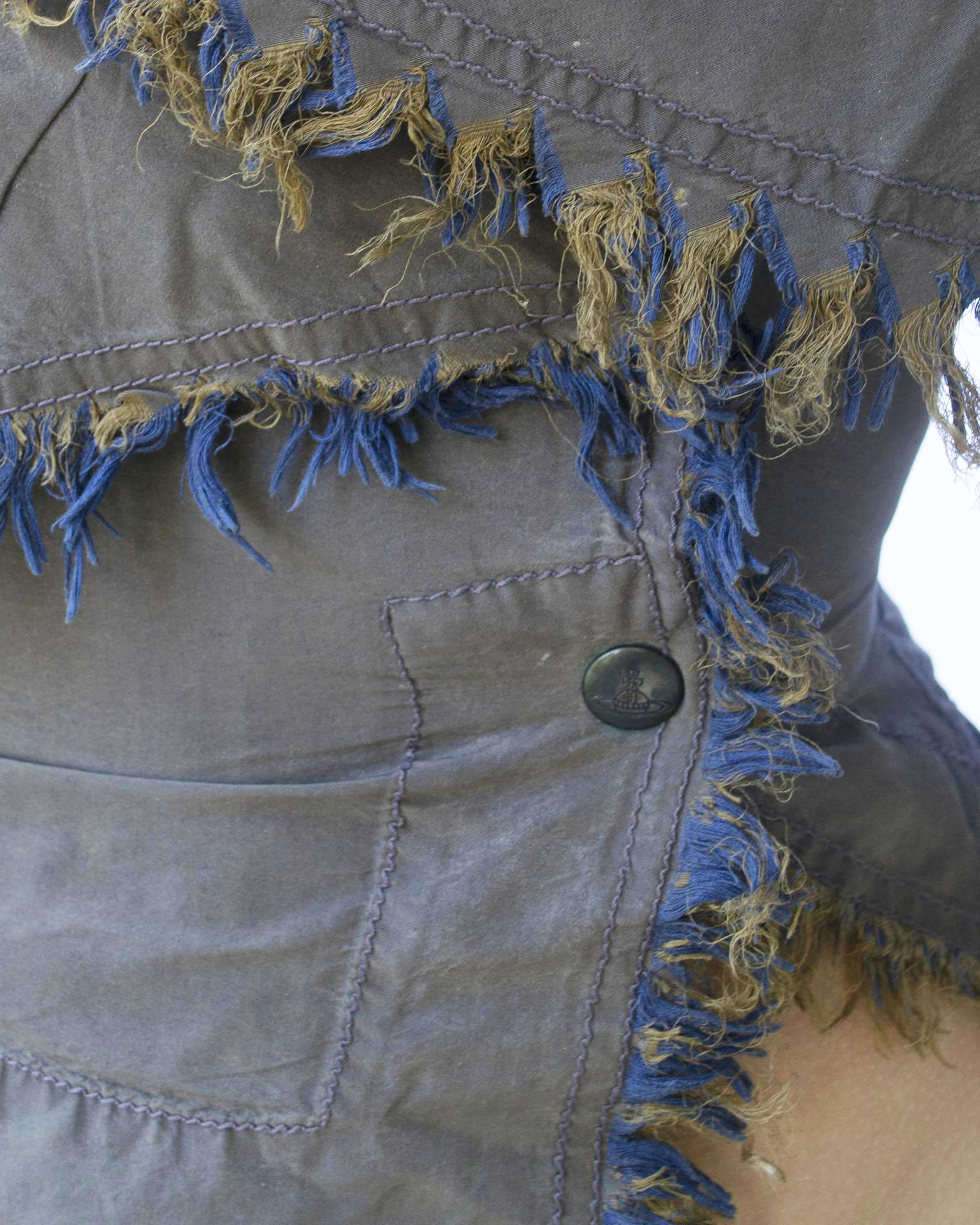 Vivienne Westwood WILD CORSET Description: Fitted top in iridescent blue-mud...