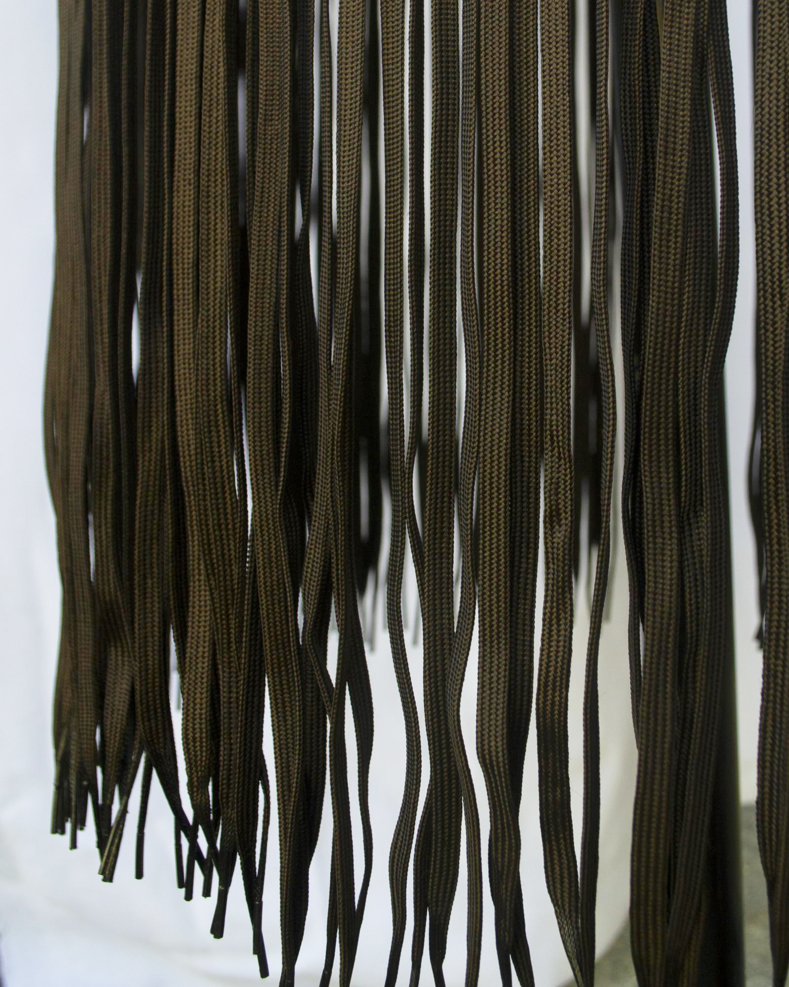Esemplare corset stitched and decorated with weaves and fringes made with shoe strings. Special corset for collectors, part of the collection made for the 'Blond Ambition World Tour'. 1990. Size IT40, Made in Italy. Perfectly preserved.