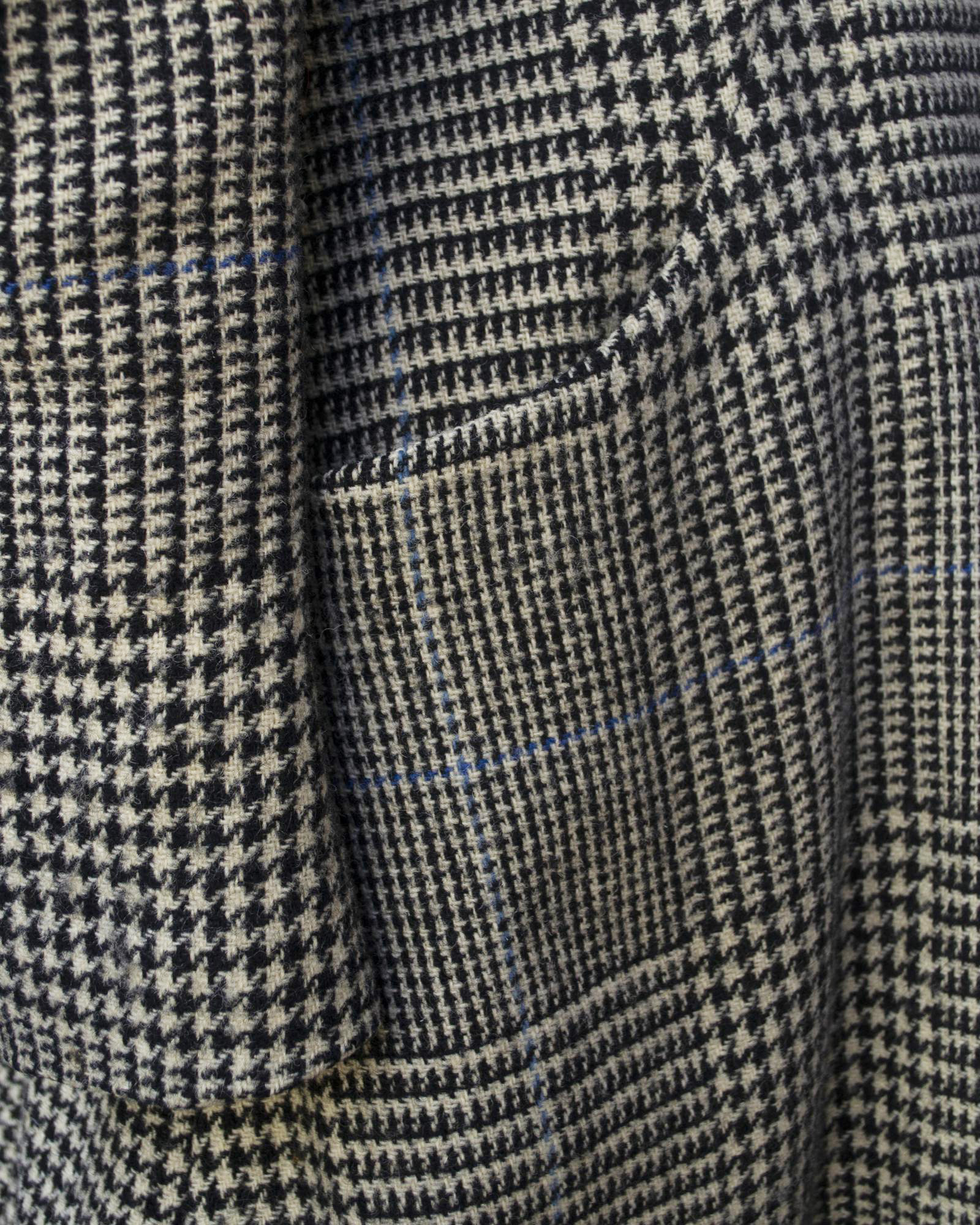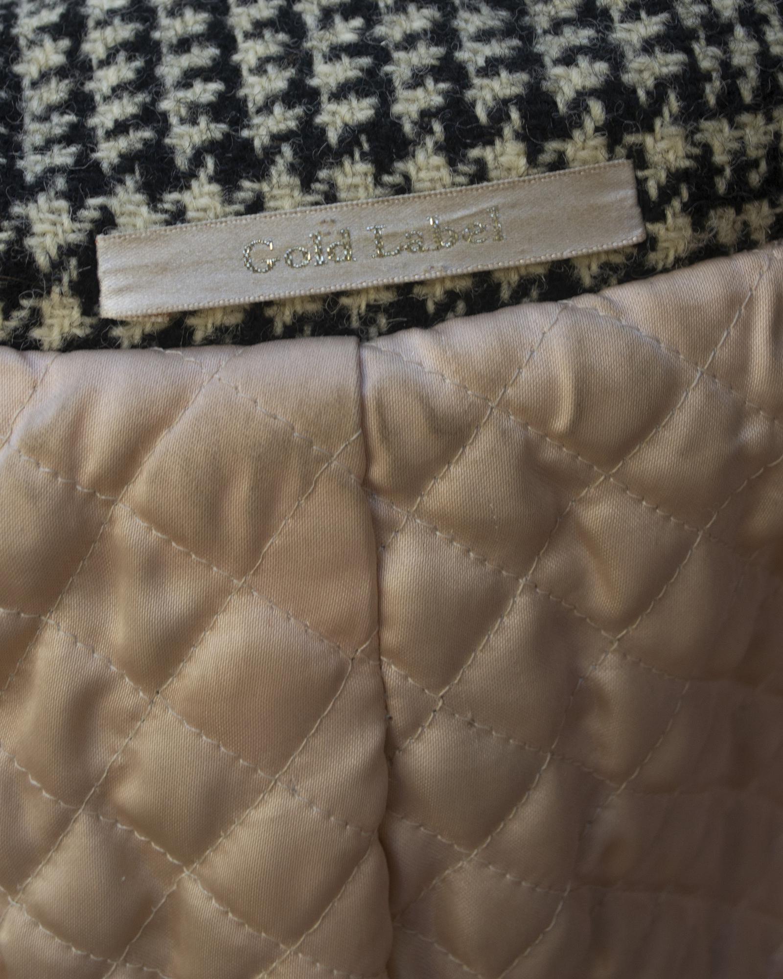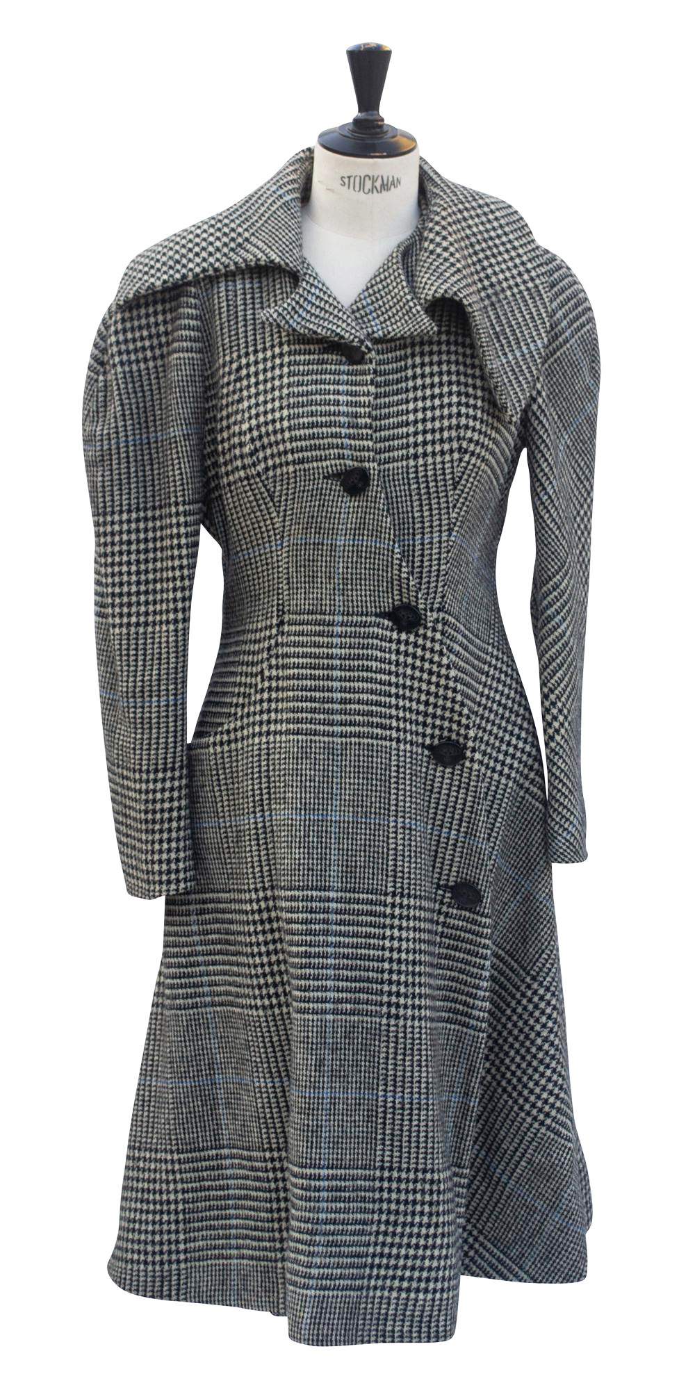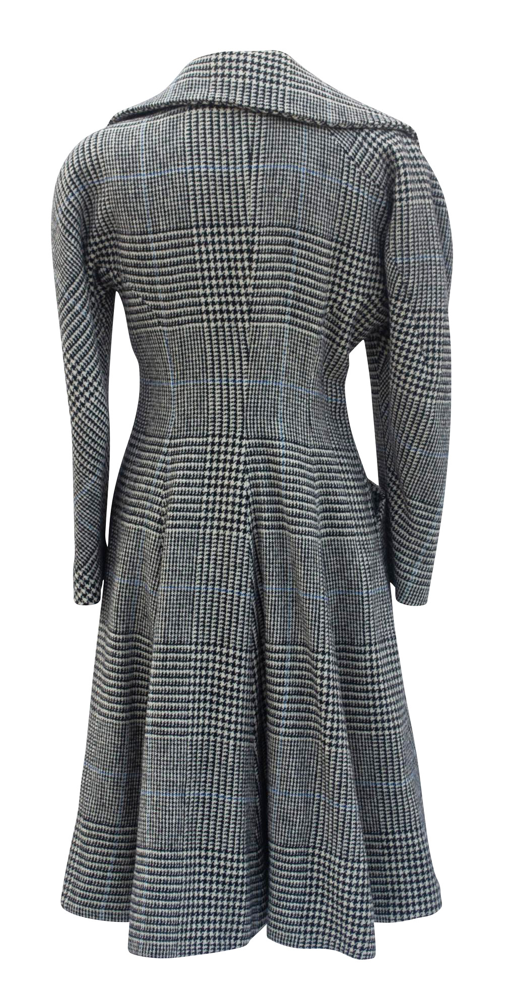 Asymmetrical frock coat made in Harris Tweed fabric with Prince of Wales design, lined with quilted padding, calf length, giant buttons with Orb logo. Pockets, made in England UK size 10. Perfectly preserved.